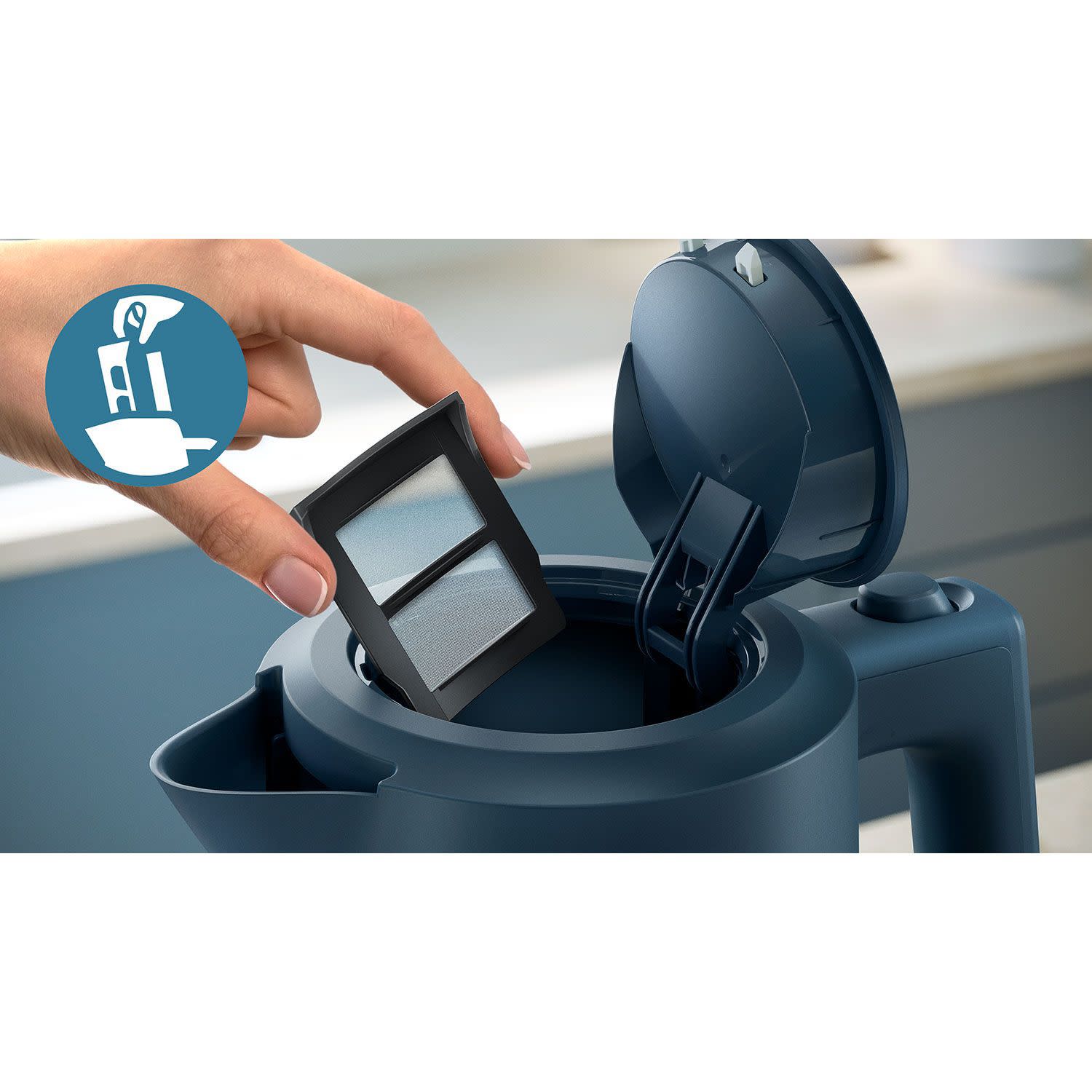 Το άνοιγμα του καπακιού του βραστήρα για αναπλήρωση είναι απλό και διαισθητικό, με ένα κουμπί που βρίσκεται εύκολα στη λαβή. Επομένως, είτε είσαι αριστερόχειρας είτε δεξιόχειρας, απλά σκέπασε το καπάκι και κράτησέ το κάτω από τη βρύση για να ξαναγεμίσεις νερό. Χρησιμοποίησε εύκολα το ένα χέρι για να ανοίξεις και να ξαναγεμίσεις τον βραστήρα, με το κουμπί απασφάλισης του καπακιού.