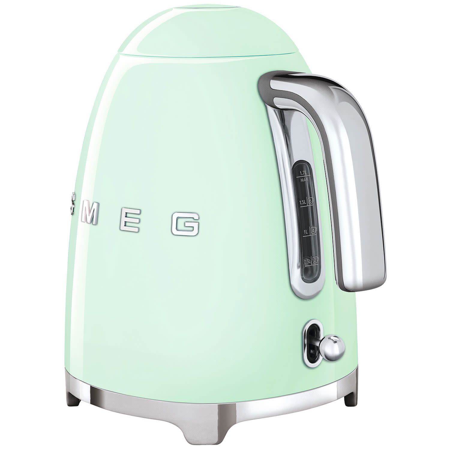 Φιστικί βραστήρας Smeg KLF03PGEU με ισχύ 2400W και χωρητικότητα 1.7Lt για γρήγορο βράσιμο νερού και εξοικονόμηση ενέργειας! Βράσε νερό με ασφάλεια αφού ο βραστήρας σου διαθέτει αυτόματη διακοπή λειτουργίας στους 100°C και απόλαυσε ευκολία στην χρήση με την περιστρεφόμενη βάση 360° που διαθέτει η συσκευή σου!