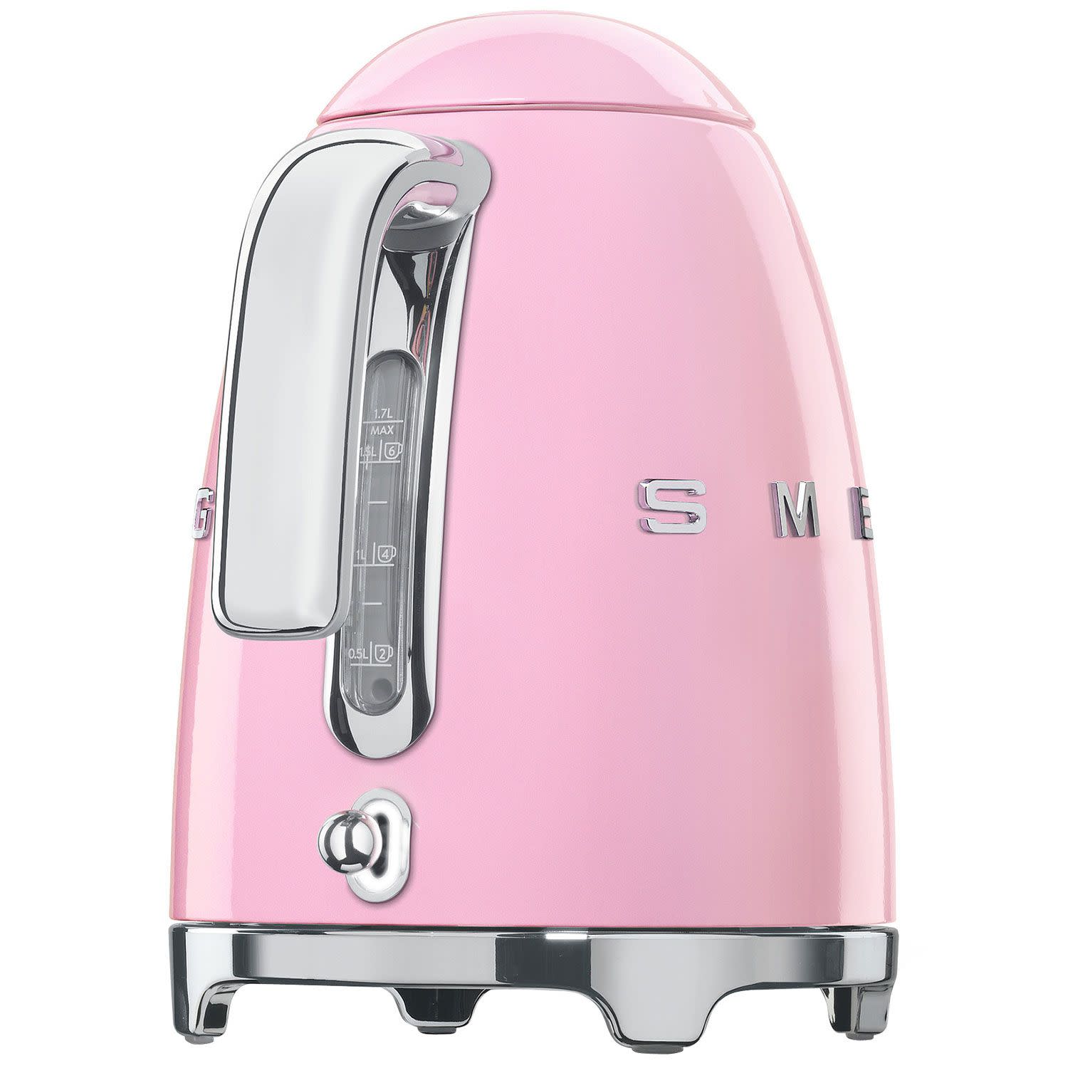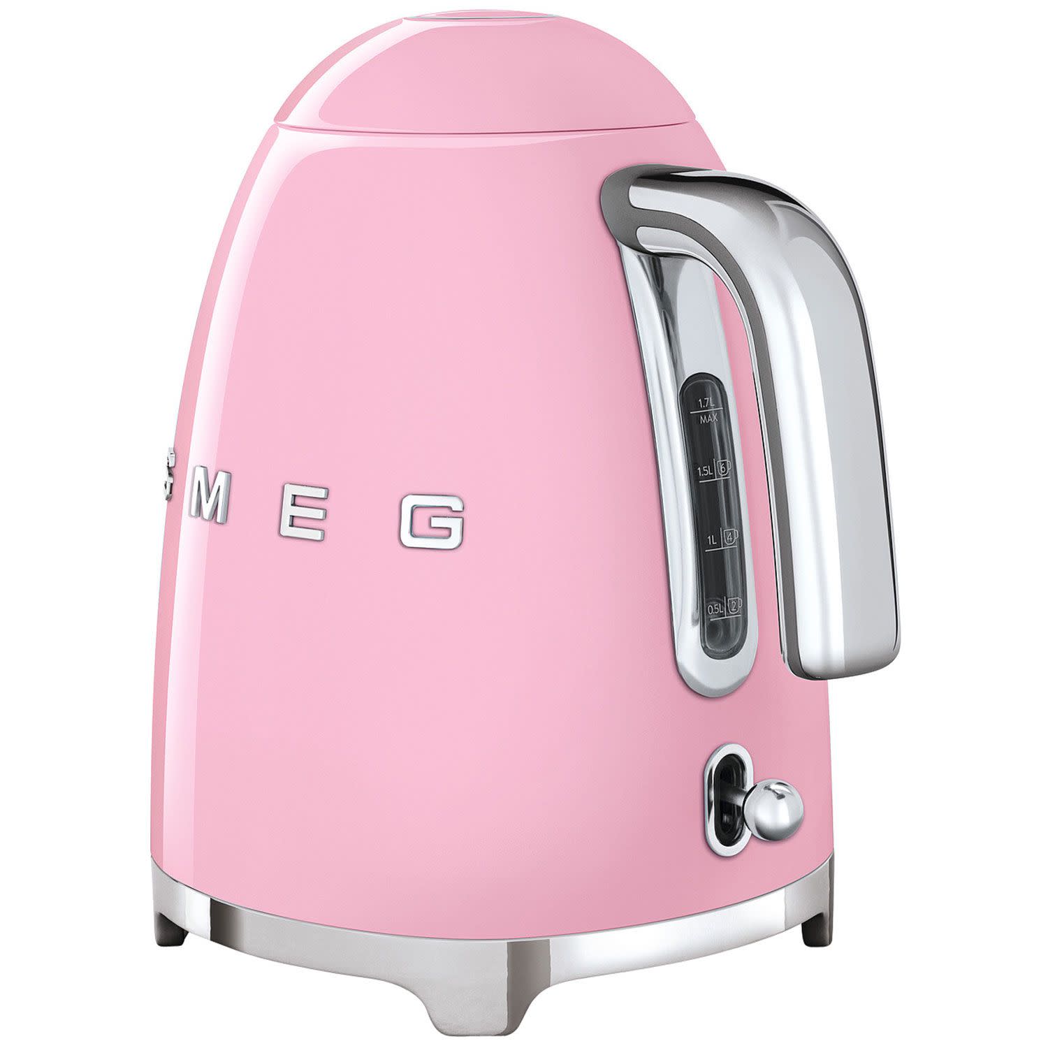 Ροζ βραστήρας Smeg KLF03PKEU με ισχύ 2400W και χωρητικότητα 1.7Lt για γρήγορο βράσιμο νερού και εξοικονόμηση ενέργειας! Βράσε νερό με ασφάλεια αφού ο βραστήρας σου διαθέτει αυτόματη διακοπή λειτουργίας στους 100°C και απόλαυσε ευκολία στην χρήση με την περιστρεφόμενη βάση 360° που διαθέτει η συσκευή σου!