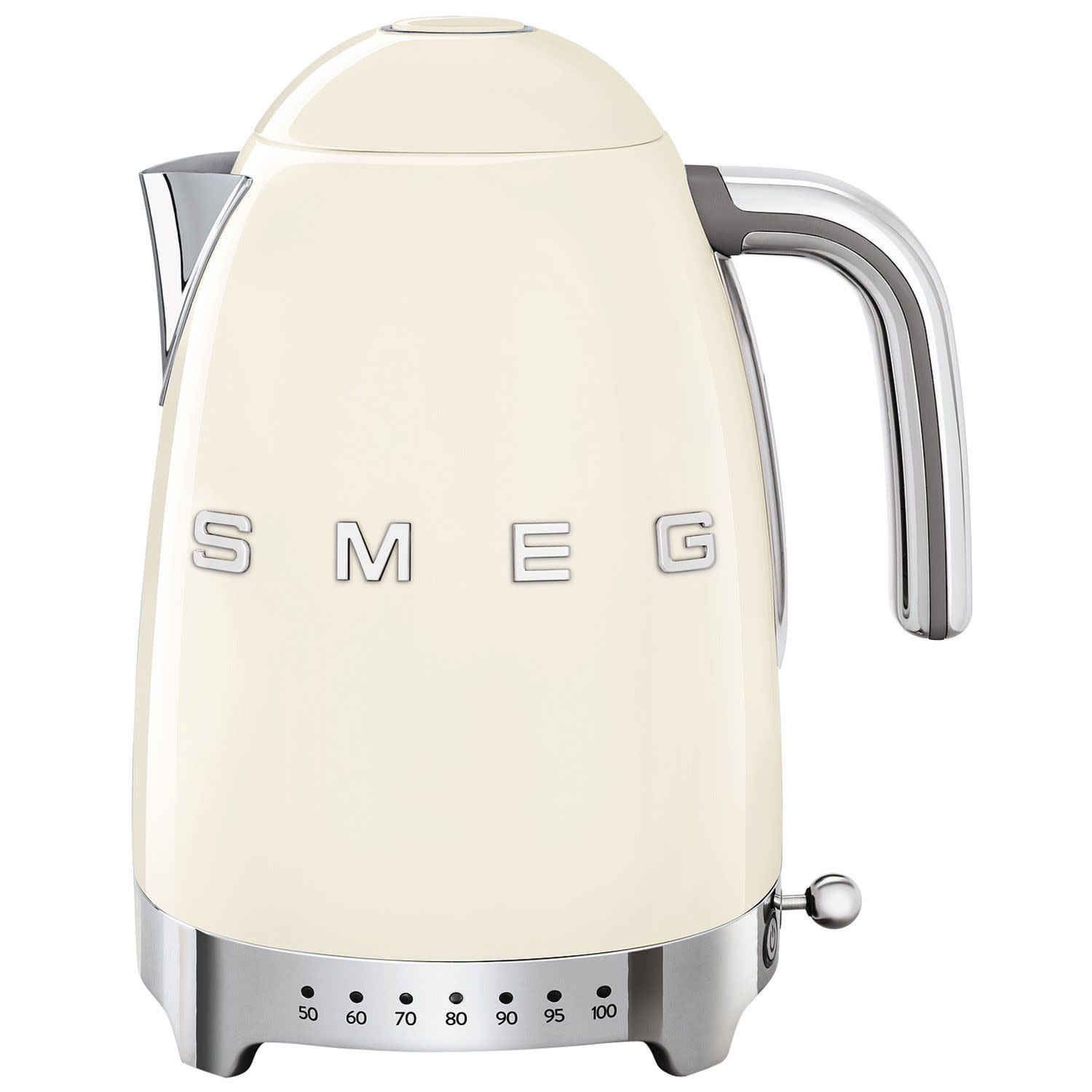 Μπεζ ρυθμιζόμενος βραστήρας Smeg KLF04CREU με ισχύ 2400W και χωρητικότητα 1.7Lt για γρήγορο βράσιμο νερού και εξοικονόμηση ενέργειας! Διασφάλισε ευελιξία στη χρήση, αφού μπορείς να επιλέξεις τη θερμοκρασία που σε εξυπηρετεί ανάμεσα στις 7 που διαθέτει η συσκευή και απόλαυσε ευκολία στην χρήση με την περιστρεφόμενη βάση 360° που διαθέτει η συσκευή σου!