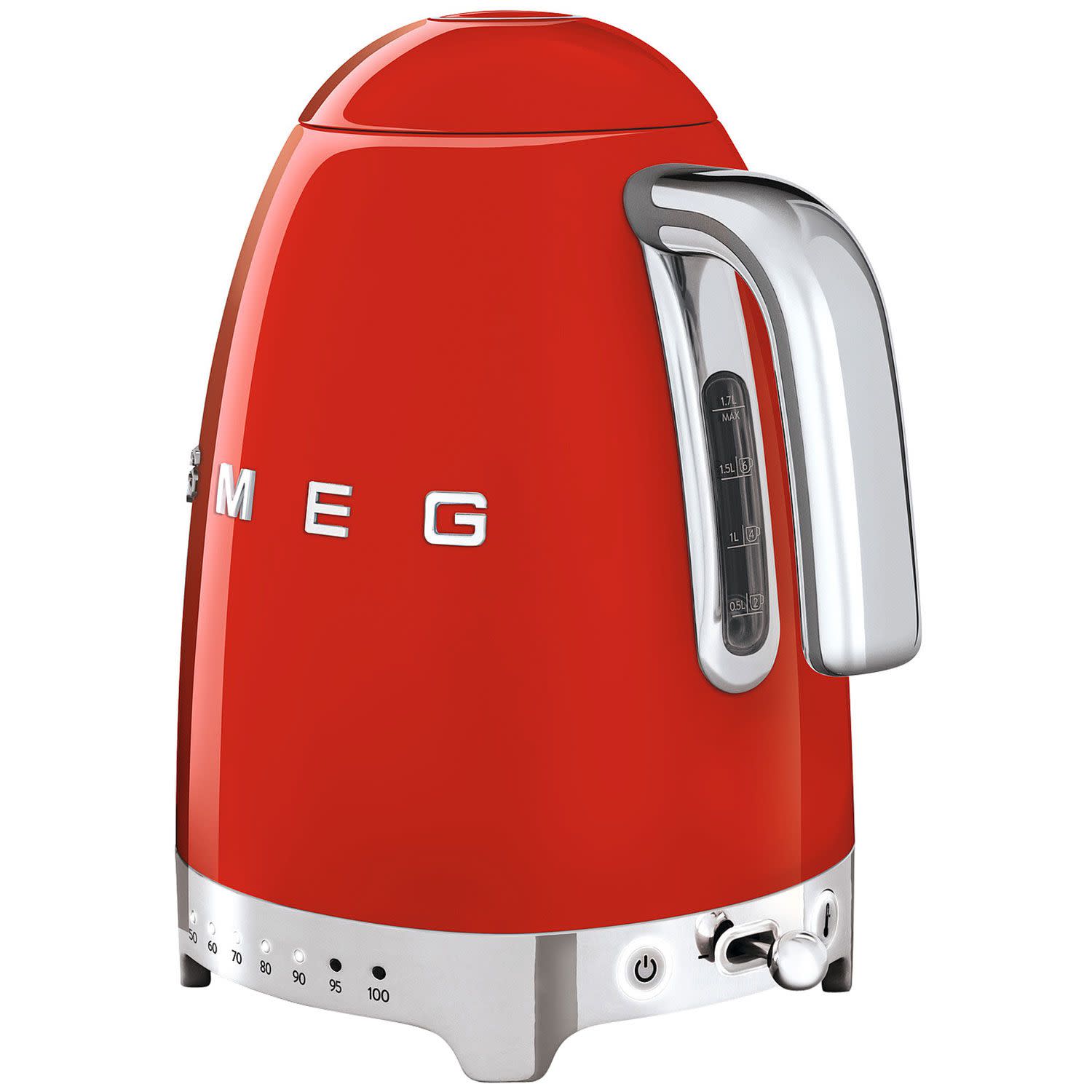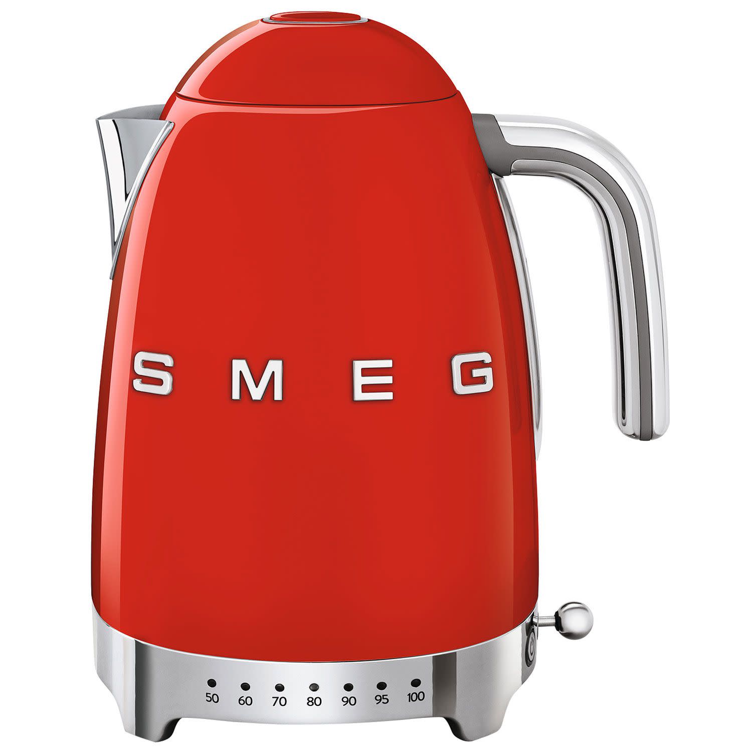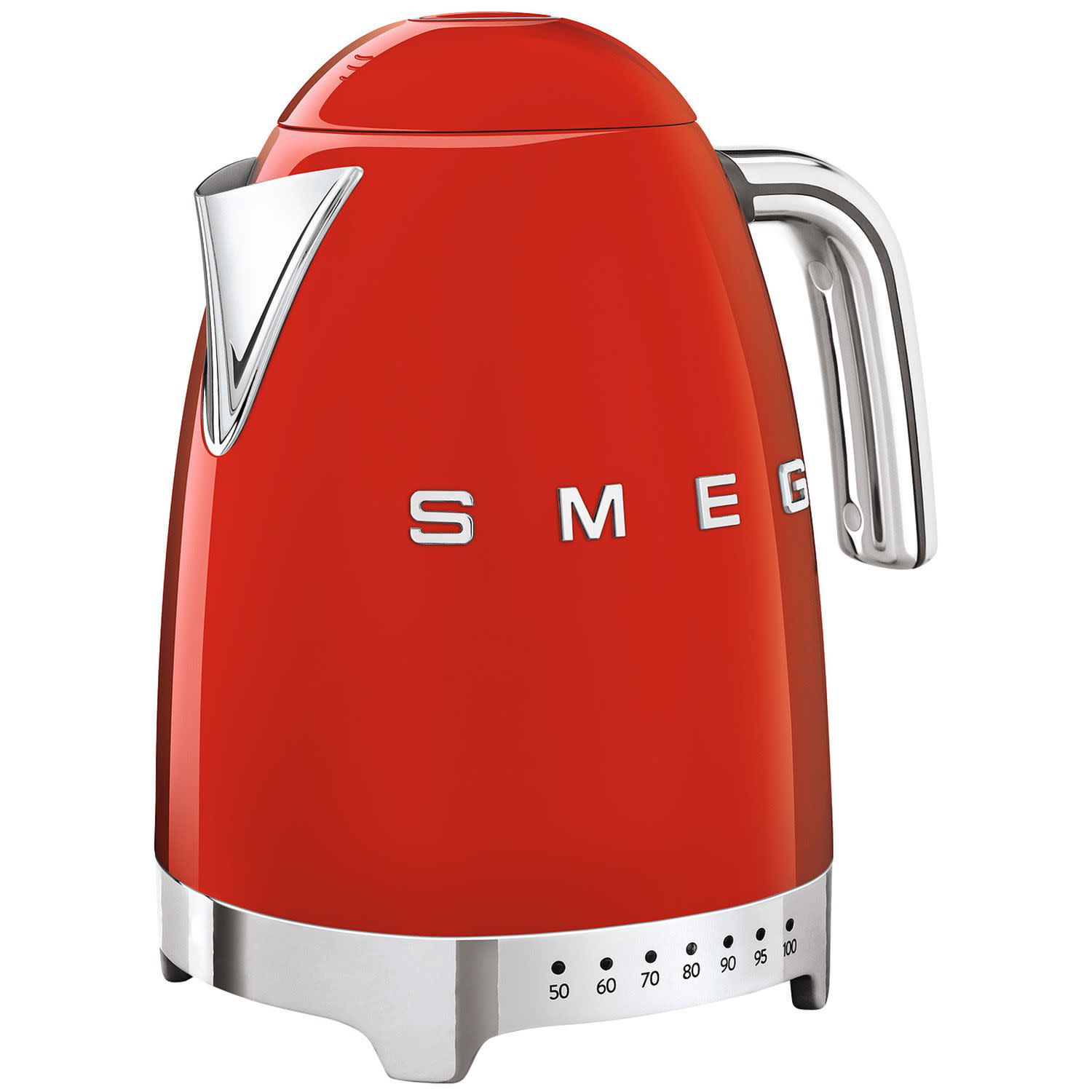 Κόκκινος ρυθμιζόμενος βραστήρας Smeg KLF04RDEU με ισχύ 2400W και χωρητικότητα 1.7Lt για γρήγορο βράσιμο νερού και εξοικονόμηση ενέργειας! Διασφάλισε ευελιξία στη χρήση, αφού μπορείς να επιλέξεις τη θερμοκρασία που σε εξυπηρετεί ανάμεσα στις 7 που διαθέτει η συσκευή και απόλαυσε ευκολία στην χρήση με την περιστρεφόμενη βάση 360° που διαθέτει η συσκευή σου!