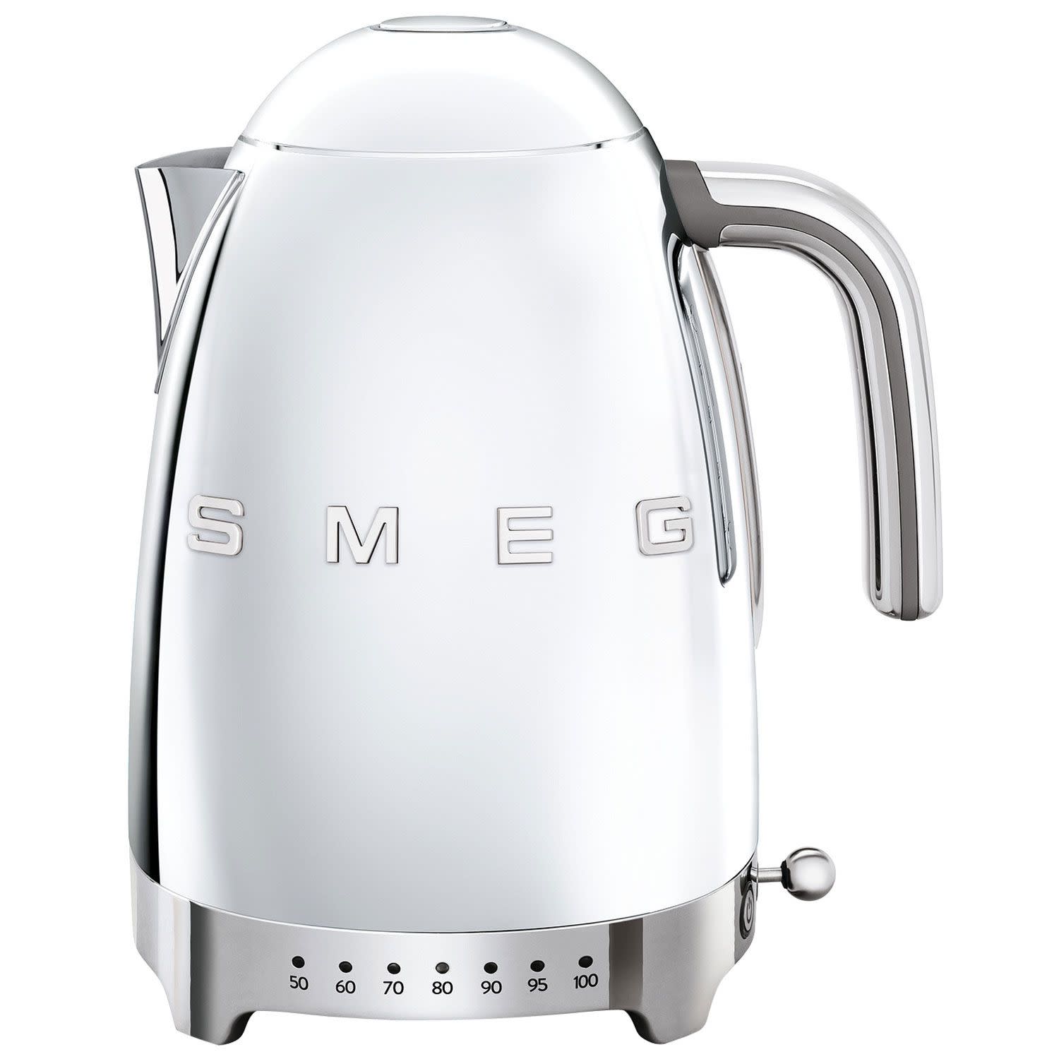 Inox ρυθμιζόμενος βραστήρας Smeg KLF04SSEU με ισχύ 2400W και χωρητικότητα 1,7lt για γρήγορο βράσιμο νερού και εξοικονόμηση ενέργειας! Διασφάλισε ευελιξία στη χρήση, αφού μπορείς να επιλέξεις τη θερμοκρασία που σε εξυπηρετεί ανάμεσα στις 7 που διαθέτει η συσκευή και απόλαυσε ευκολία στην χρήση με την περιστρεφόμενη βάση 360° που διαθέτει η συσκευή σου!
