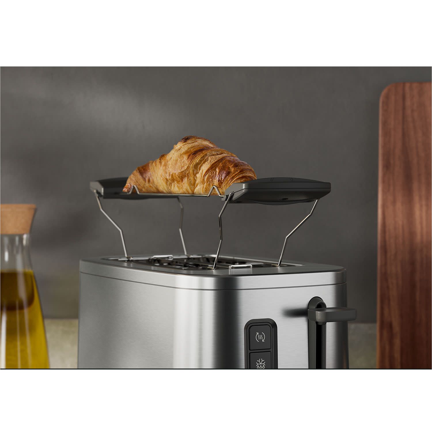 Για τελειότητα στο ζέσταμα η φρυγανιέρα σου διαθέτει ειδική σχάρα για να ξεροψήνει φραντζολάκια και κρουασάν. Άσ’ τα πάνω της και θα αποκτήσουν τη ροδοψημένη και τραγανή κρούστα που επιθυμείς! Τοποθετημένη στο επάνω μέρος της τοστιέρας, η σχάρα προσφέρει έναν γρήγορο και βολικό τρόπο να ζεστάνετε κάτι που είναι μεγάλο για να χωρέσει μέσα στην φρυγανιέρα.