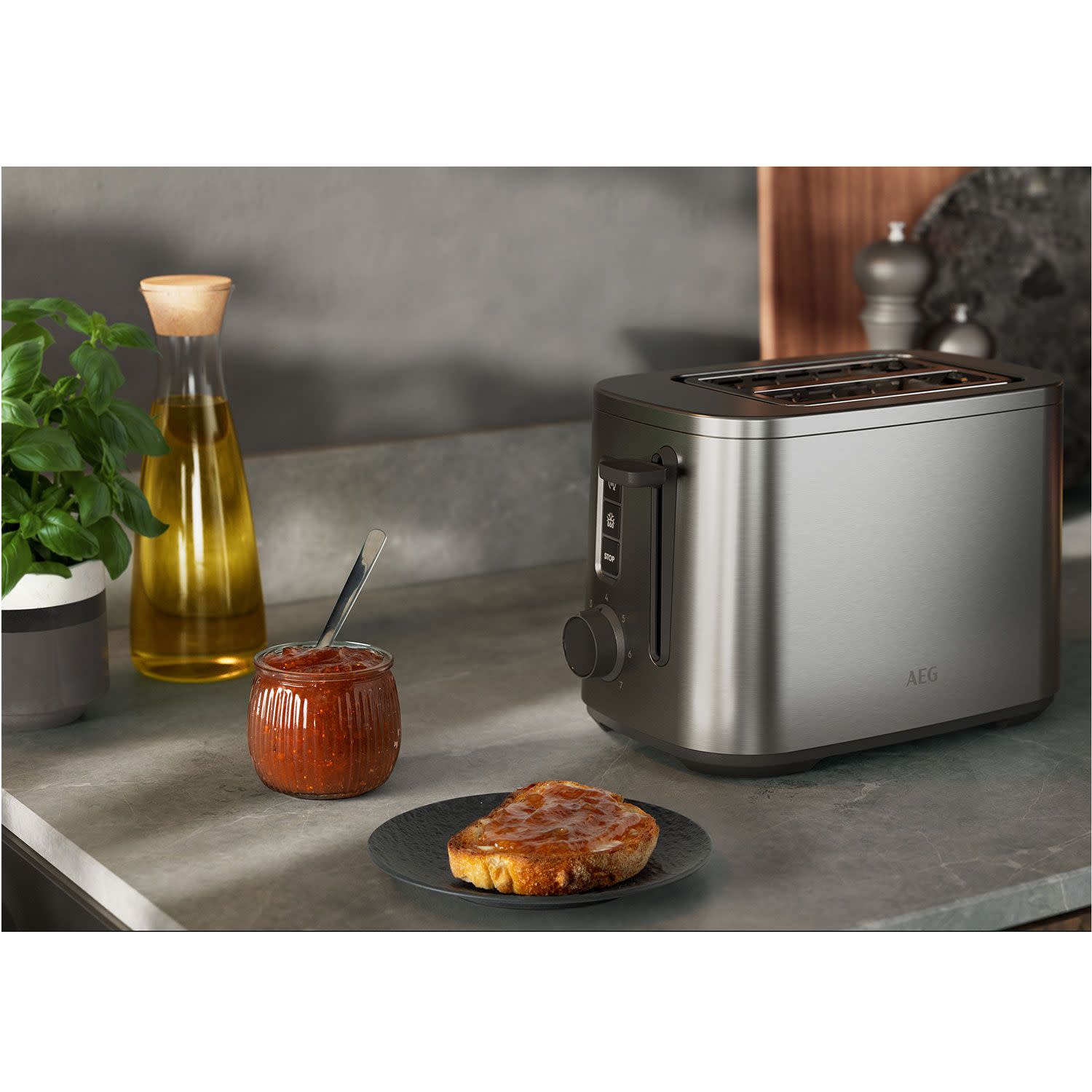 Φρυγανιέρα T5-1-4ST της AEG με 7 ρυθμίσεις ψησίματος, ισχύ 800W και αφαιρούμενο δίσκο, για εύκολο καθαρισμό από τα ψίχουλα.