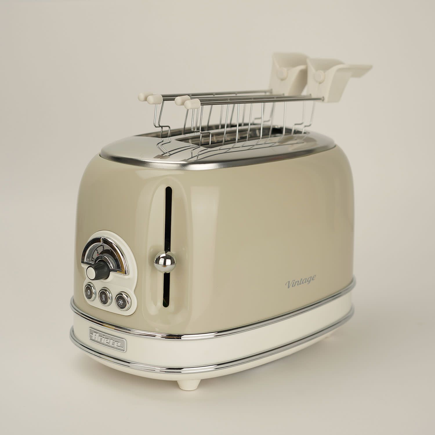 Χάρισε στην κουζίνα σου ρετρό άρωμα και στιλ υψηλής αισθητικής, με την καινούργια σου Φρυγανιέρα 155/03 Beige Vintage, από την Ariete! Με ισχύ 810W, σου εγγυάται φρυγανισμένο, λαχταριστό ψωμί σε χρόνο dt! Διαθέτει δυνατότητα ρύθμισης του θερμοστάτη σε έξι επίπεδα, για να απολαμβάνεις το ψωμί σου όσο τραγανό θες!