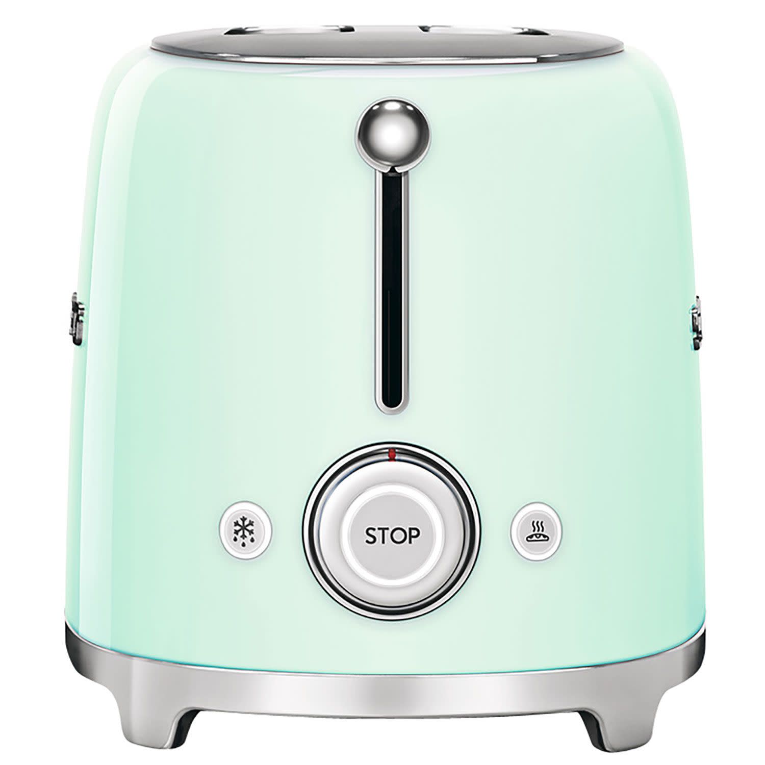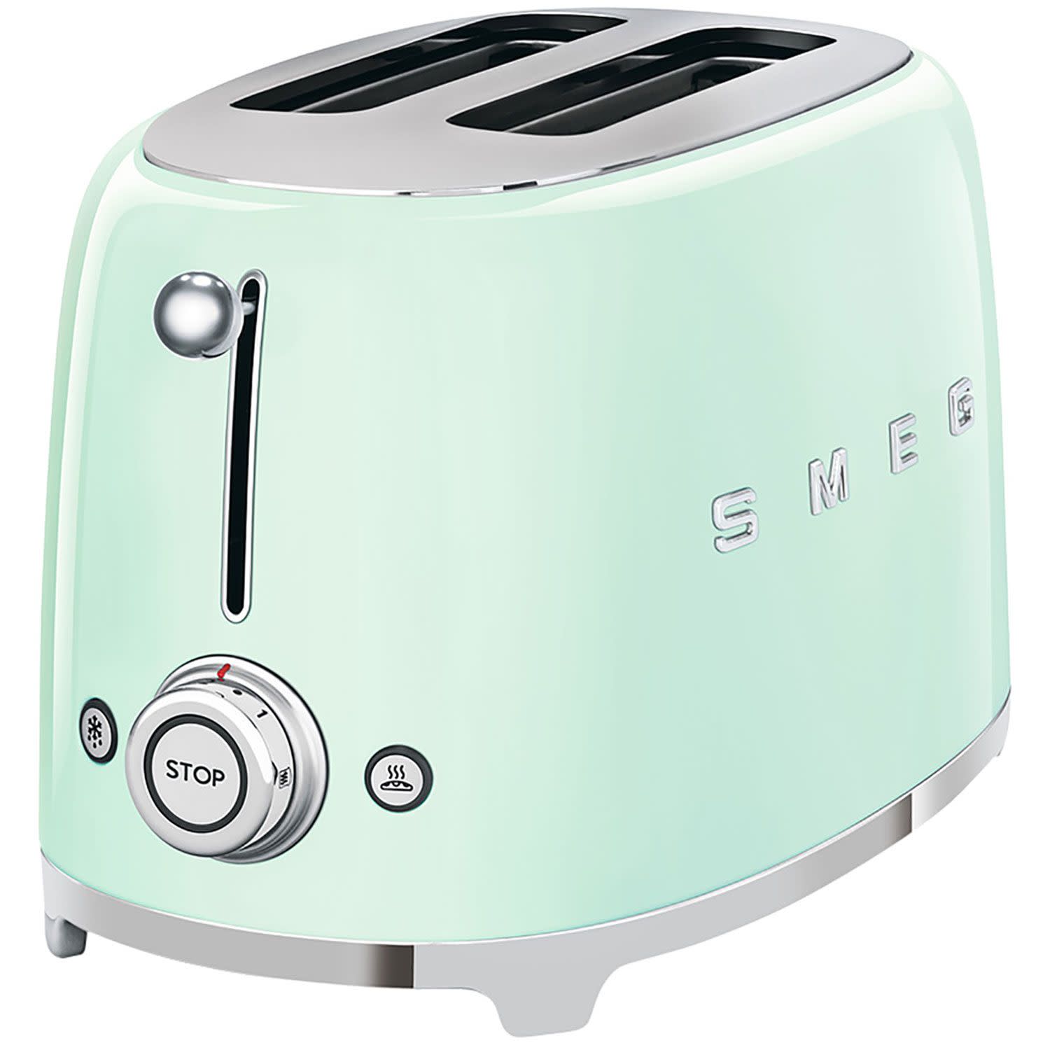 Φιστικί Smeg φρυγανιέρα 2 θέσεων TSF01PGEU με ισχύ 950w για φρυγανισμένο, λαχταριστό ψωμί σε χρόνο dt! Διαθέτει δυνατότητα ρύθμισης του θερμοστάτη σε έξι επίπεδα για να απολαμβάνεις το ψωμί σου όσο τραγανό θες, ενώ μπορείς να τη χρησιμοποιήσεις και για απόψυξη, αναθέρμανση και bagels! To 50’s style της θα ταιριάξει τέλεια σε κάθε κουζίνα ενώ παράλληλα θα αναβαθμίσει το στυλ του χώρου σου!
