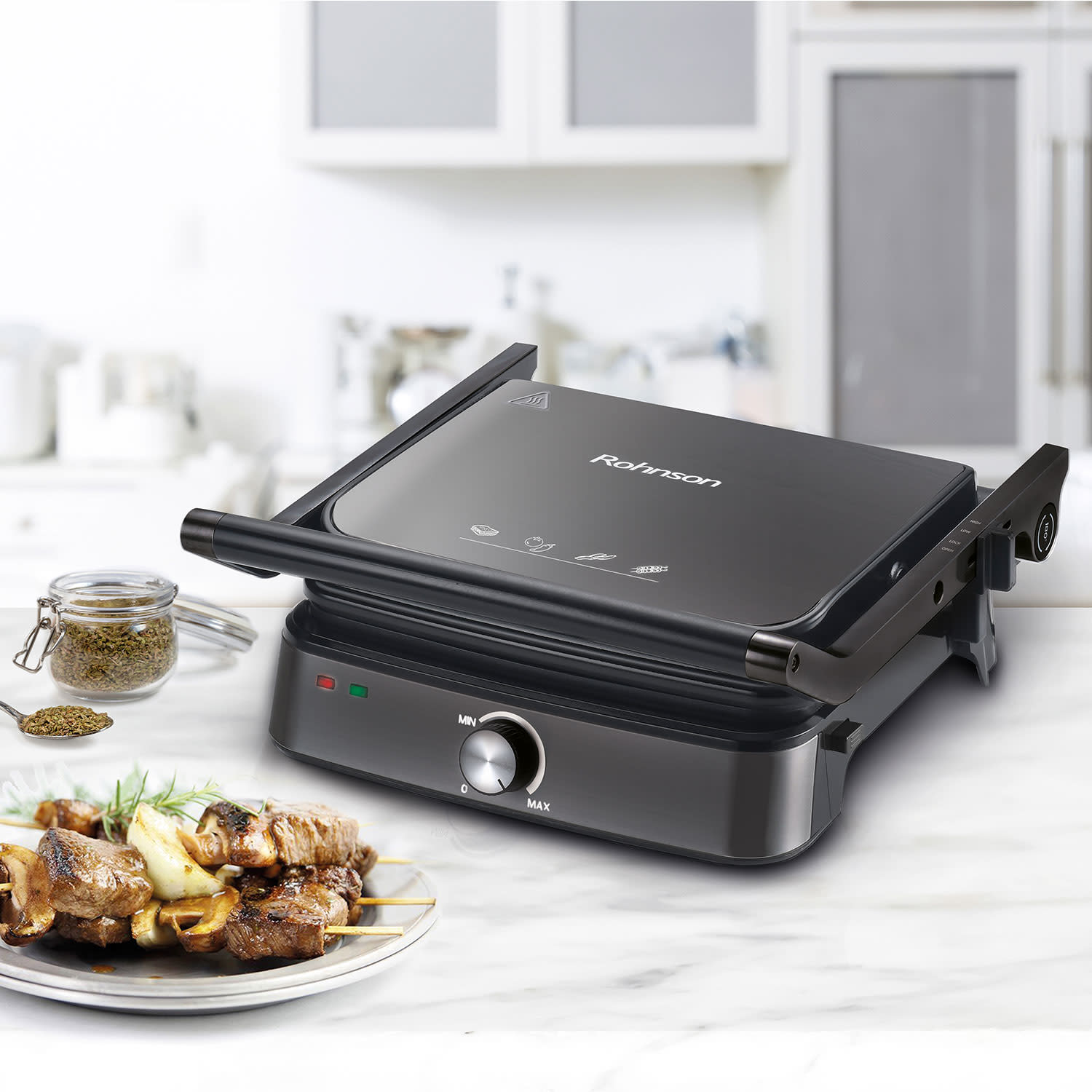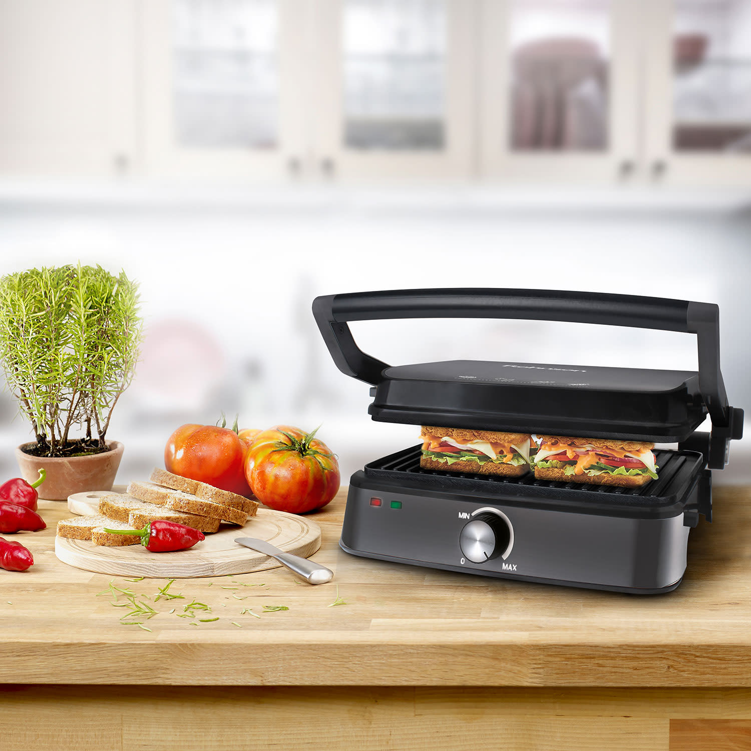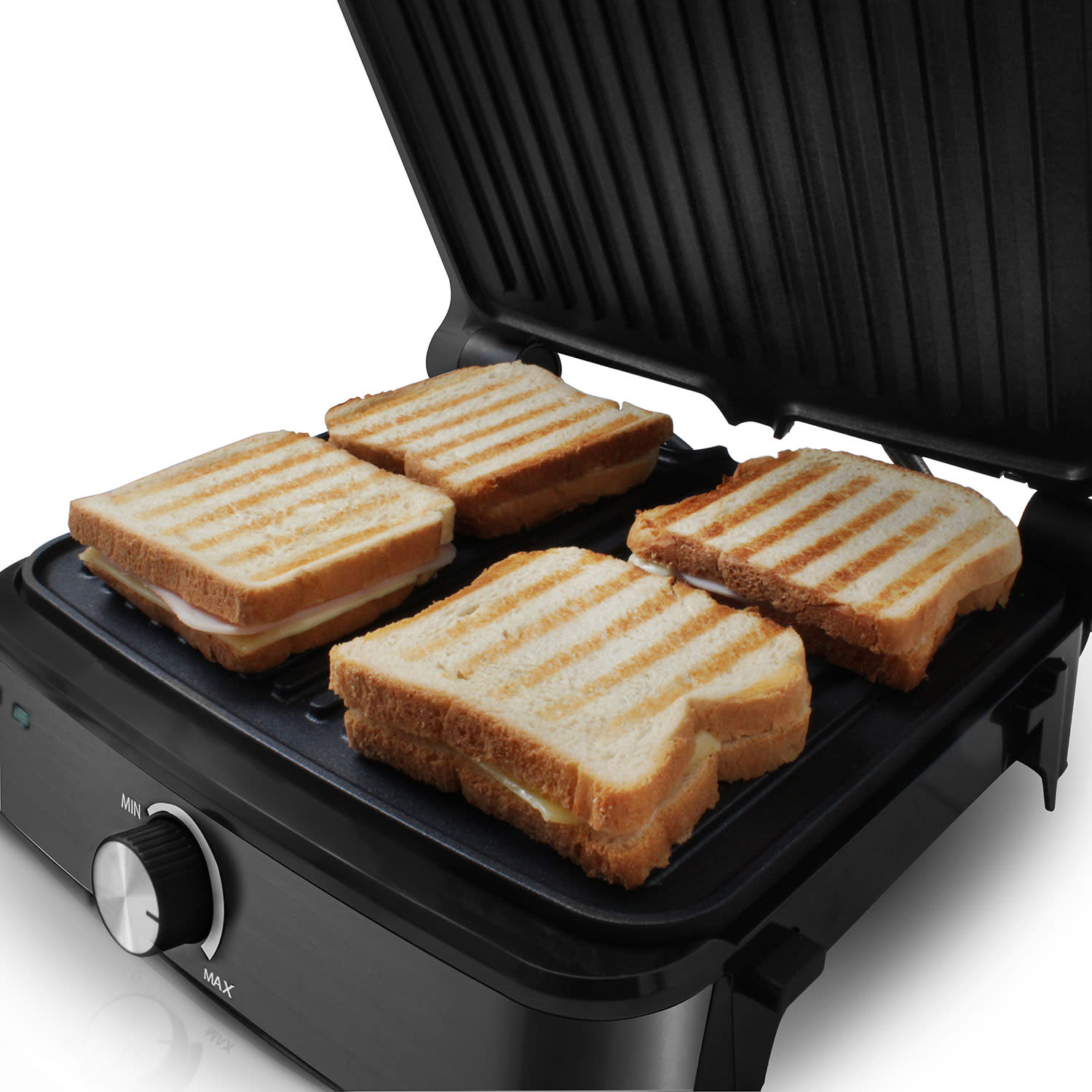 Υπέροχα τα τοστ και τα σάντουιτς, όμως κι ένα καλοψημένο φιλέτο ή μια ζουμερή μπριζόλα δεν πάνε πίσω! Με τη νέα σου συσκευή έχεις τη δυνατότητα να ψήνεις, εκτός των άλλων, μπιφτέκια, πουλερικά και ψάρια στην εντέλεια, σαν να έβαζες… κάρβουνα. Για κάθε τύπο φαγητού απλά ρυθμίζεις τη σωστή θερμοκρασία και το αποτέλεσμα σίγουρα θα σε δικαιώνει κάθε φορά!