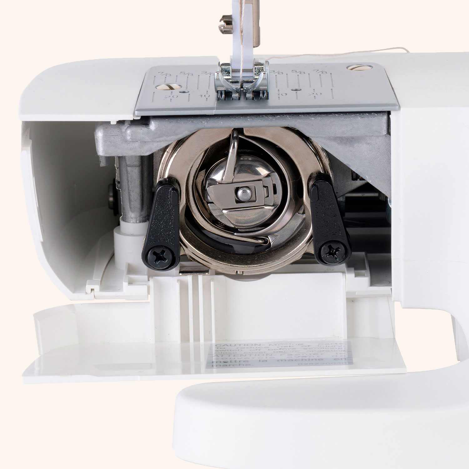 Εύκολη στο στήσιμο, με οδηγό περάσματος κλωστής που σε γλιτώνει… από νεύρα και ενσωματωμένο φως για να βλέπεις κάθε ραφή, αυτή η μηχανή είναι τέλεια για μικρές επισκευές, ρούχα που θέλεις να ανανεώσεις ή projects που βάζουν τη δημιουργικότητά σου στο max.
