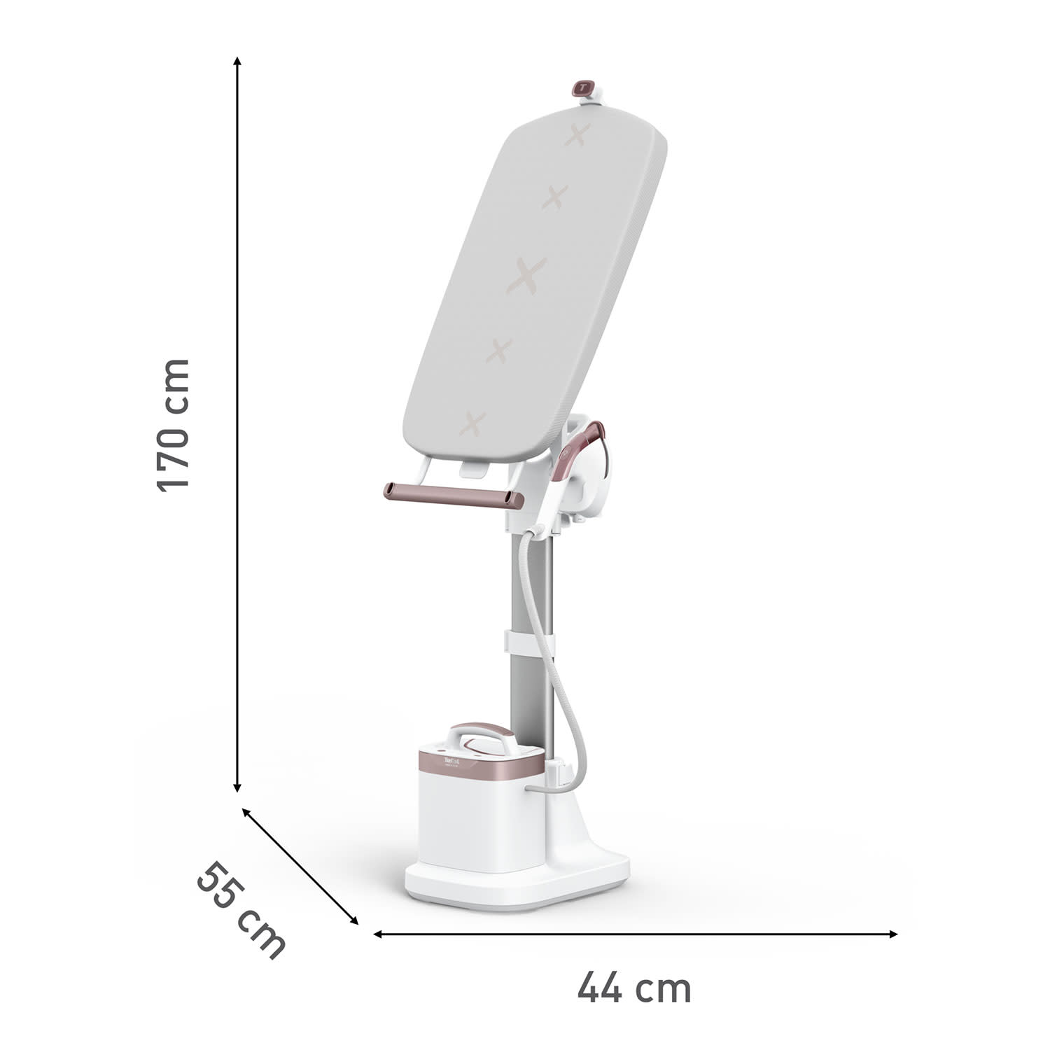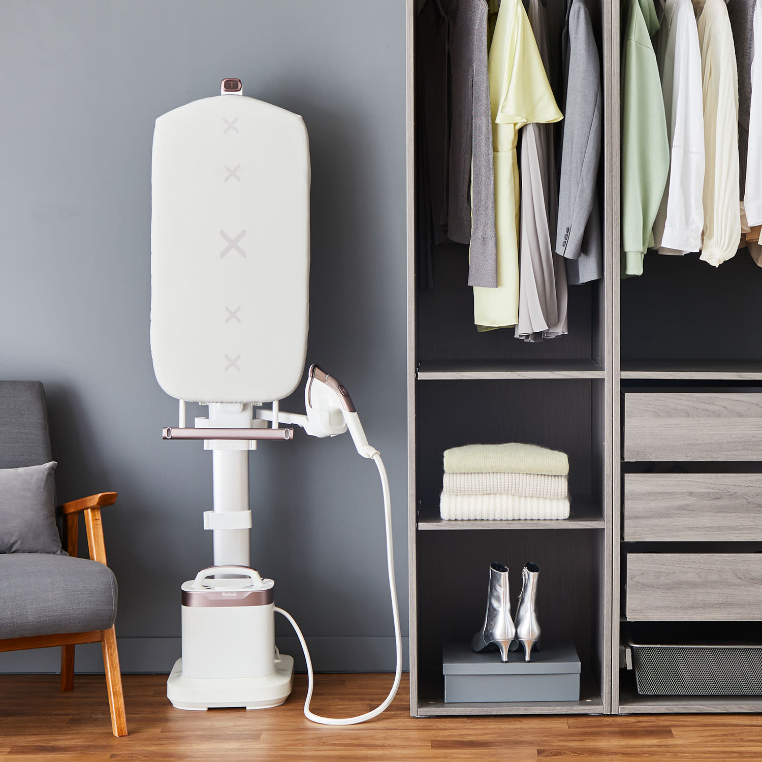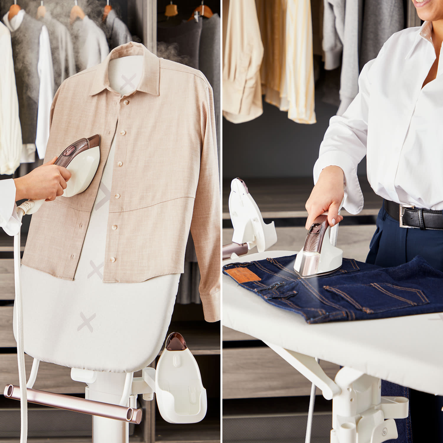 Κάλυψε όλες τις ανάγκες φροντίδας των ρούχων σου με τη ρυθμιζόμενη σανίδα που χειρίζεσαι εύκολα με το ένα χέρι. Ακόμα, χρησιμοποίησε το αναδιπλούμενο άγκιστρο για να κρεμάσεις τα ρούχα σου κατευθείαν από τη ντουλάπα και «άτμισέ» τα χωρίς κόπο, είτε κάθετα είτε οριζόντια.