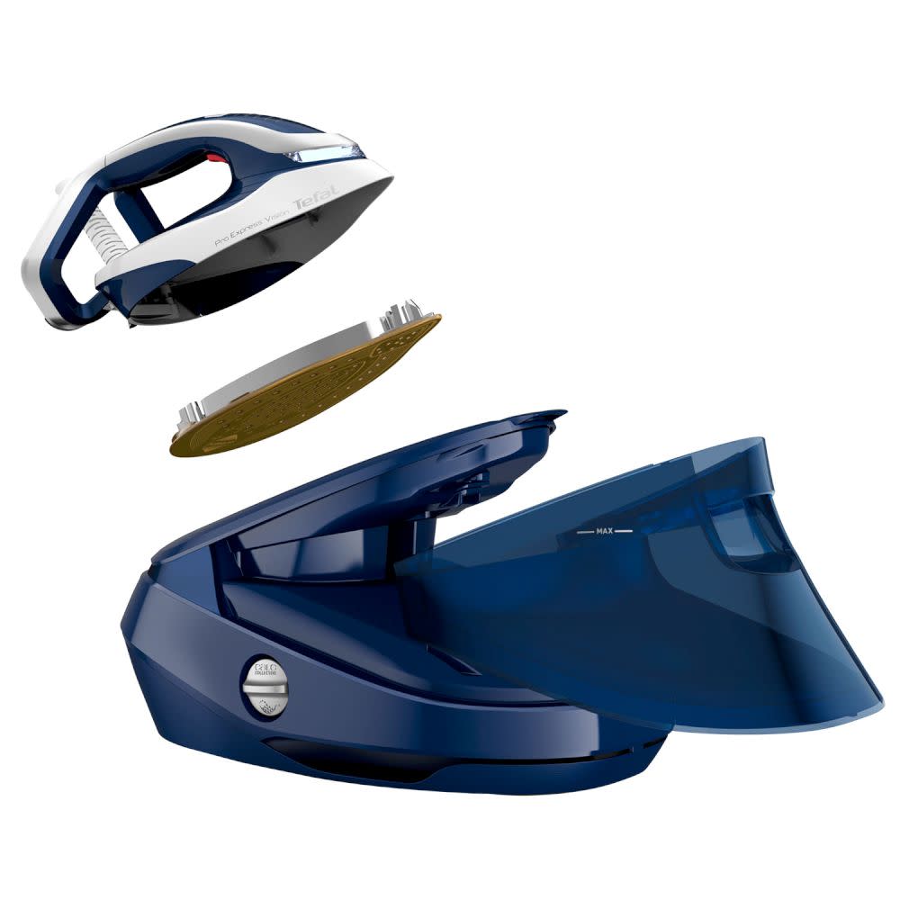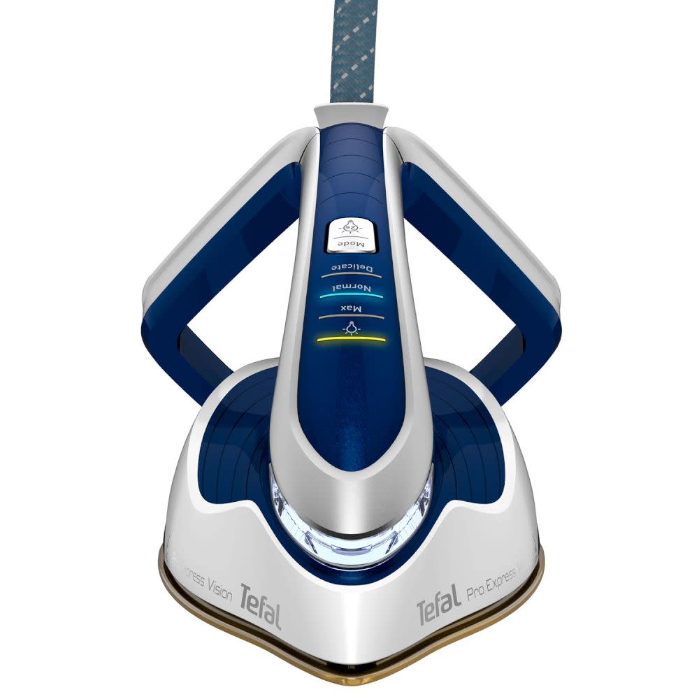 Σύστημα σιδερώματος Tefal με ισχύ 3000W, παραγωγή κάθετου ατμού και σύστημα απομάκρυνσης αλάτων. Διαθέτει LED φωτισμό για καλύτερη ορατότητα και αθόρυβη τεχνολογία για να μην ενοχλεί.