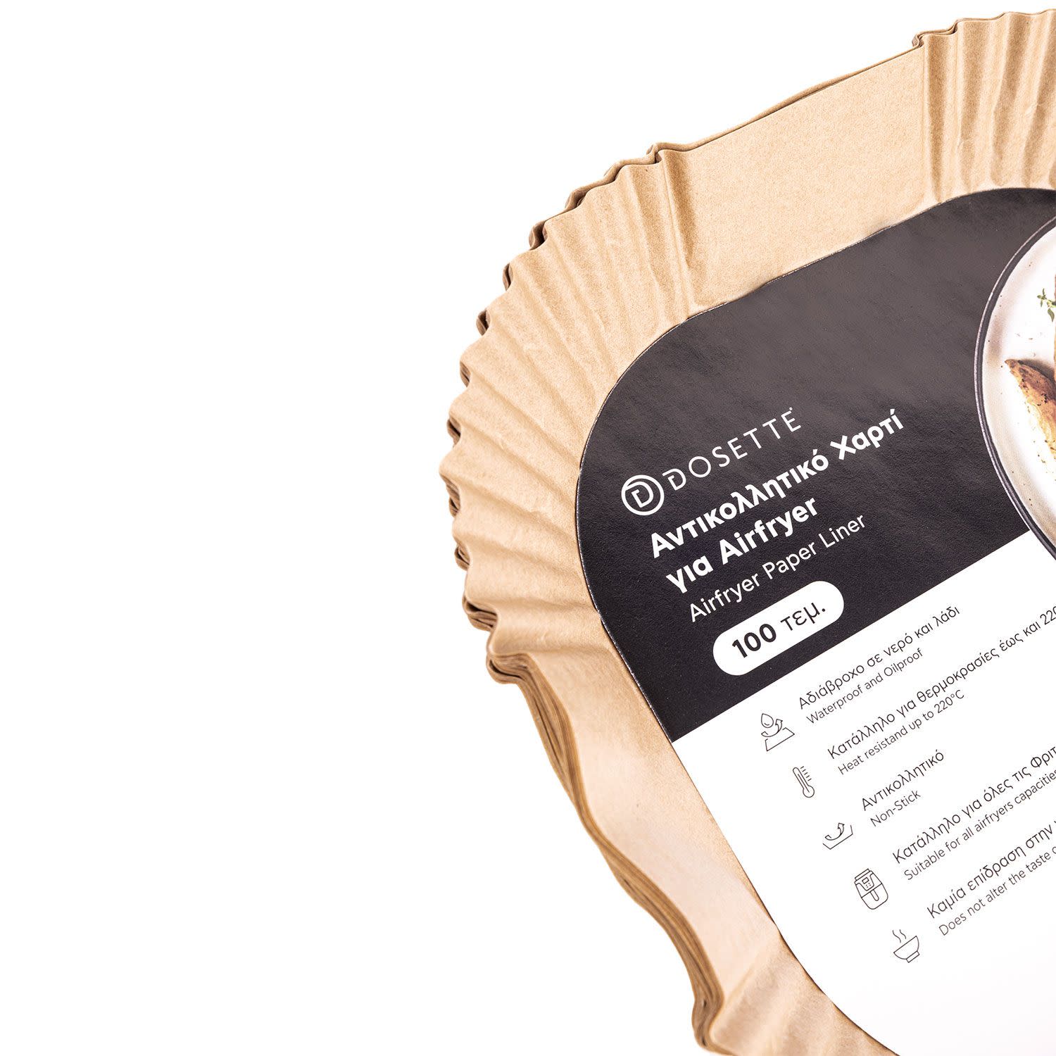 Αντικολλητικό χαρτί της Dosette για να ψήνεις στο Airfryer, χωρίς να μένουν υπολείμματα στη συσκευή. Αντέχει σε θερμοκρασίες έως 200°C και είναι αδιάβροχο σε νερό και λάδι.