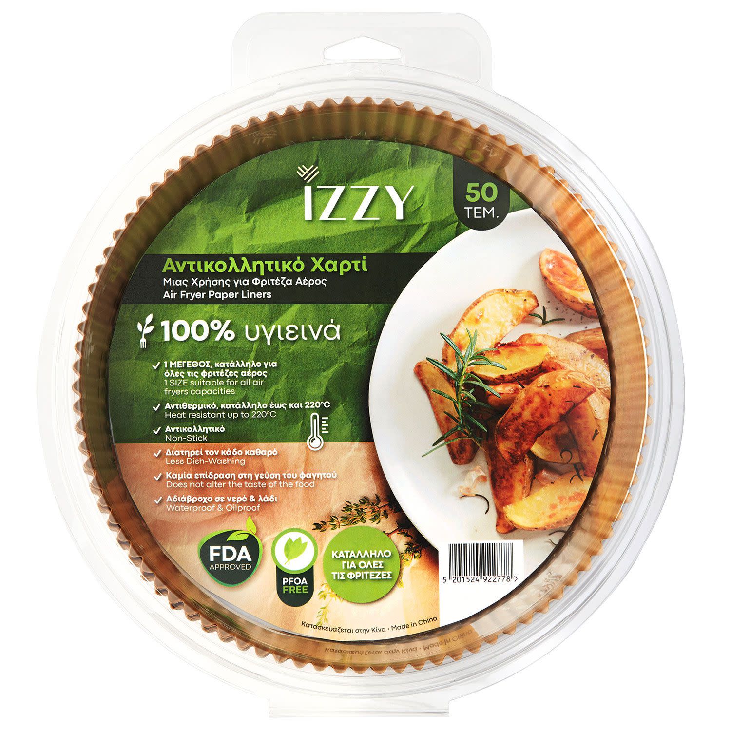 Αντικολλητικό χαρτί Izzy για να ψήνεις στο Airfryer ή στο φούρνο χωρίς να μένουν υπολείμματα στις συσκευές. Αντέχει σε θερμοκρασίες έως 220οC και είναι αδιάβροχο σε νερό και λάδι.
