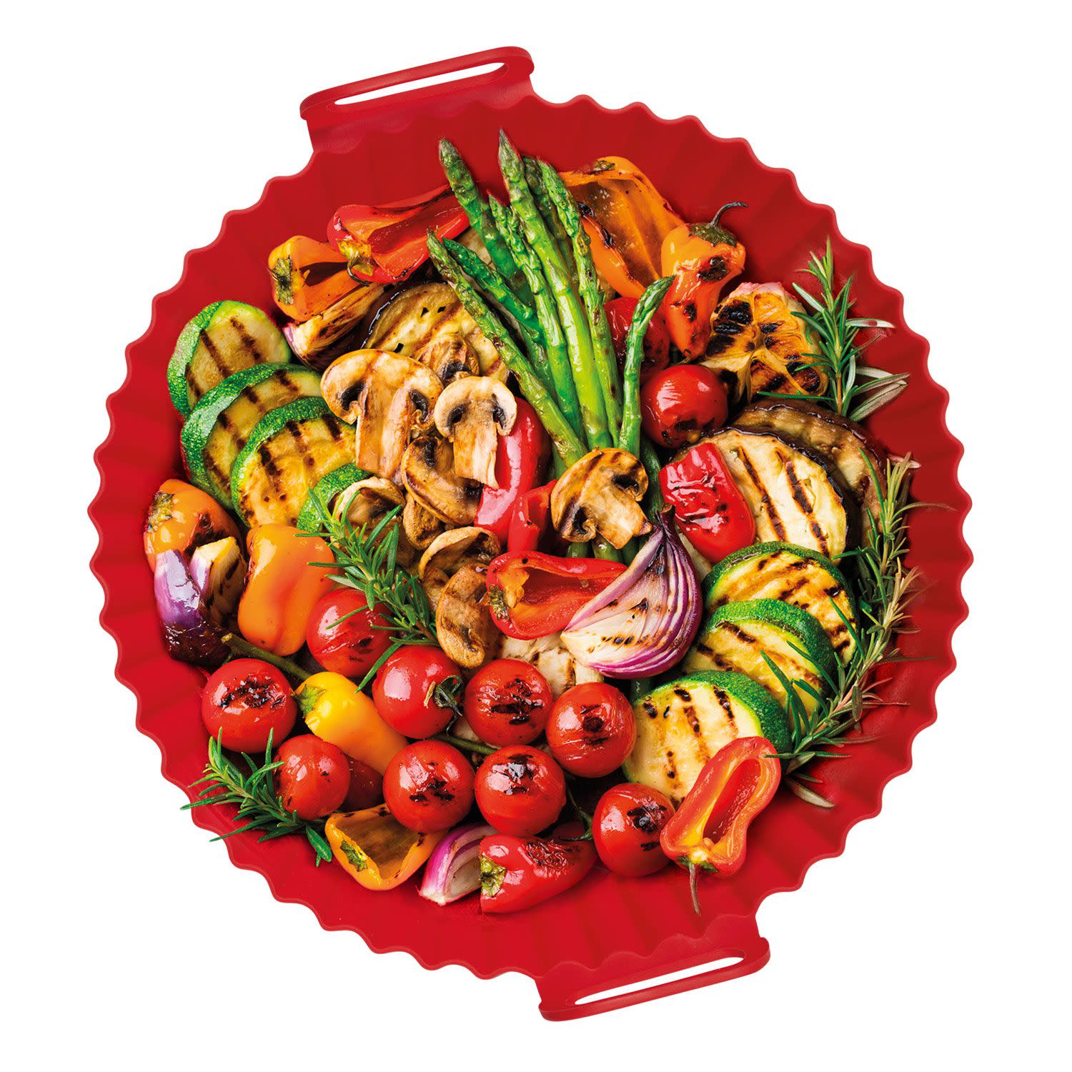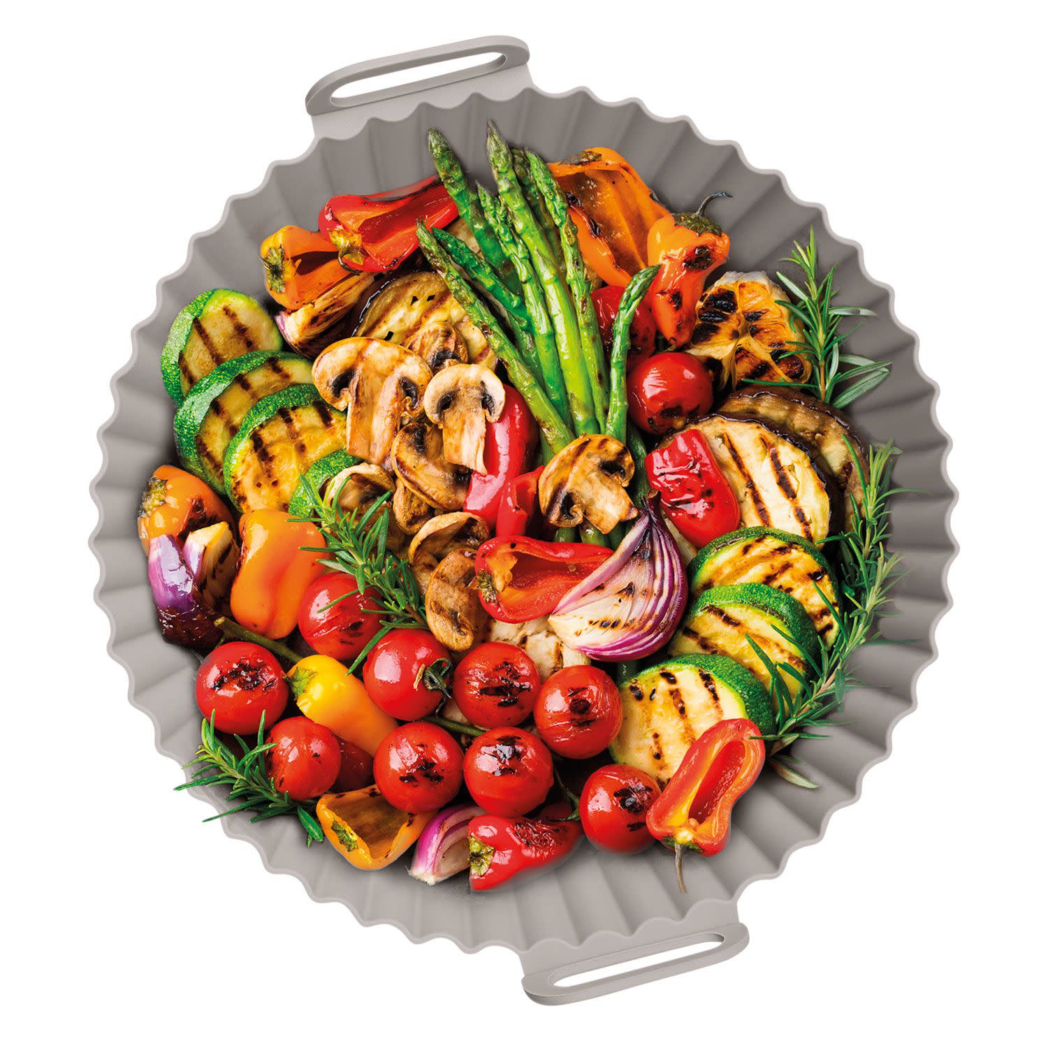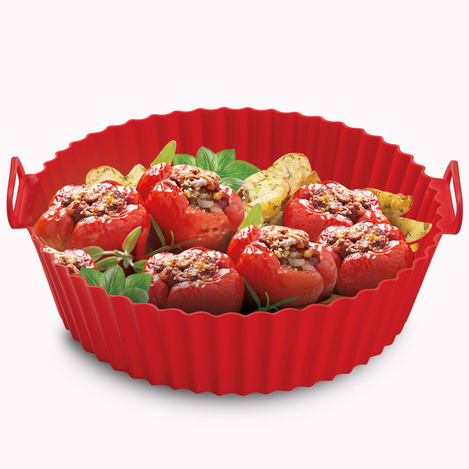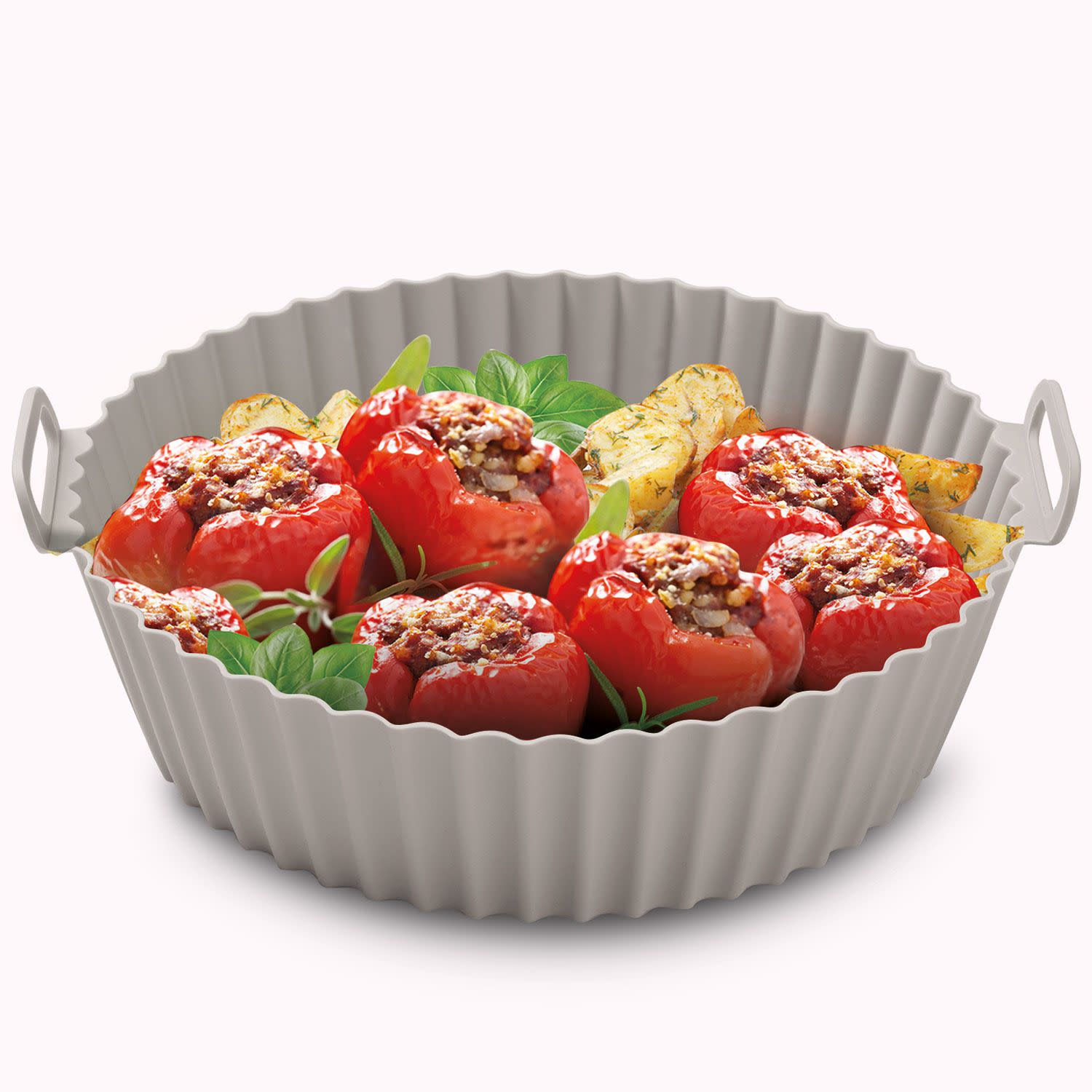 Αντικολλητική Φόρμα Σιλικόνης Φριτέζας της Izzy, για να ψήνεις στο Airfryer ή στο φούρνο χωρίς να μένουν υπολείμματα. Αντέχει σε θερμοκρασίες έως 220°C και είναι αδιάβροχη σε νερό και λάδι.