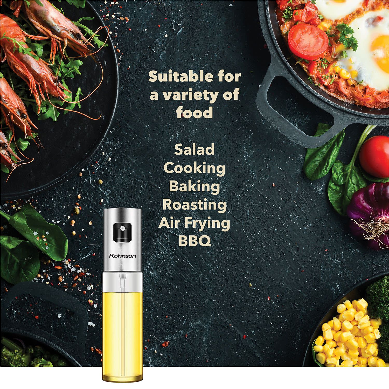 Απόλαυσε νόστιμα φαγητά, με πολύ λιγότερα λιπαρά, χρησιμοποιώντας ακριβώς την ποσότητα λαδιού που πρέπει με τον ψεκαστή AF06 της Rohnson! Έχει χωρητικότητα 100ml και πλένεται στο πλυντήριο πιάτων, αφού είναι κατασκευασμένος από ανοξείδωτο ατσάλι και γυαλί, το οποίο μάλιστα αντέχει σε υψηλές θερμοκρασίες, ώστε να τον έχεις δίπλα σου καθόλη τη διάρκεια μαγειρέματος!