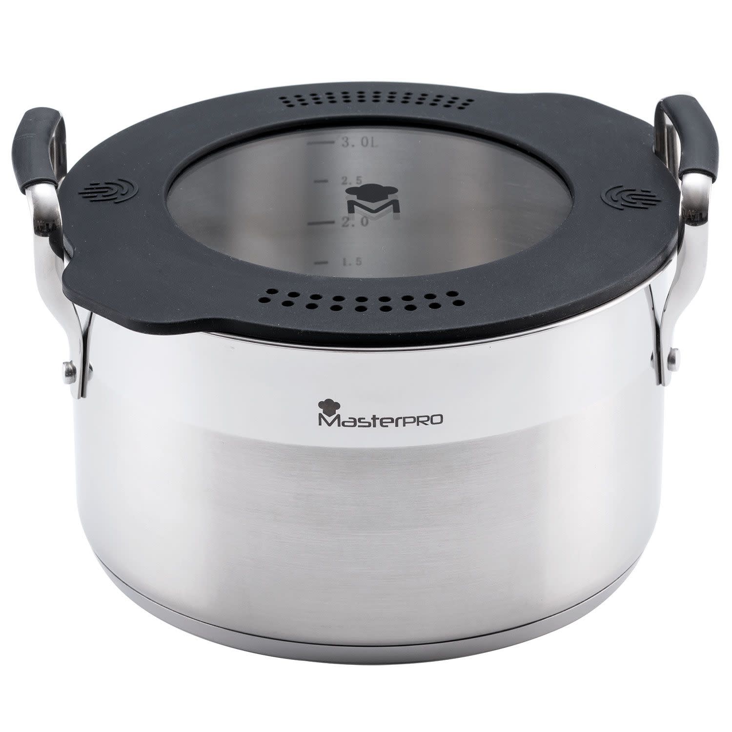 Κατσαρόλα ανοξείδωτη της MasterPro, με διαστάσεις 20×11.5cm και χωρητικότητα 3.6Lt που είναι κατάλληλη για όλες τις εστίες.