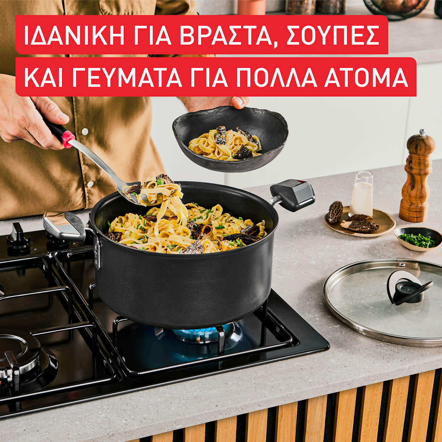 Με το βαθύ, πολυχρηστικό της σχήμα, η κατσαρόλα της Tefal είναι ιδανική για να δημιουργείς απολαυστικά, πλούσια γεύματα για τα οικογενειακά τραπέζια ή για να μοιράζεσαι νόστιμες στιγμές με φίλους. Συνδυάζει άνεση και ευελιξία, που την κάνουν ένα χρήσιμο εργαλείο σε κάθε κουζίνα.