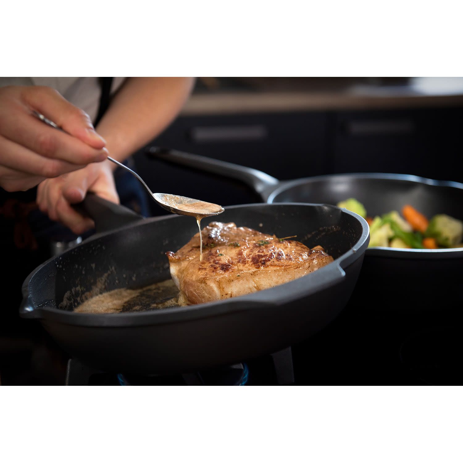 Επειδή το καλό φαγητό πέρα από γεύση πρέπει να ξεχωρίζει και με την ποιότητα παρασκευής του, το νέο σου τηγάνι δεν αφήνει τίποτα στη τύχη. Η αντικολλητική του επίστρωση ακολουθεί όλα τα πρότυπα ασφαλείας και δεν περιέχει PFOA, μόλυβδο ή κάδμιο, για πλήρως υγιεινό μαγείρεμα.