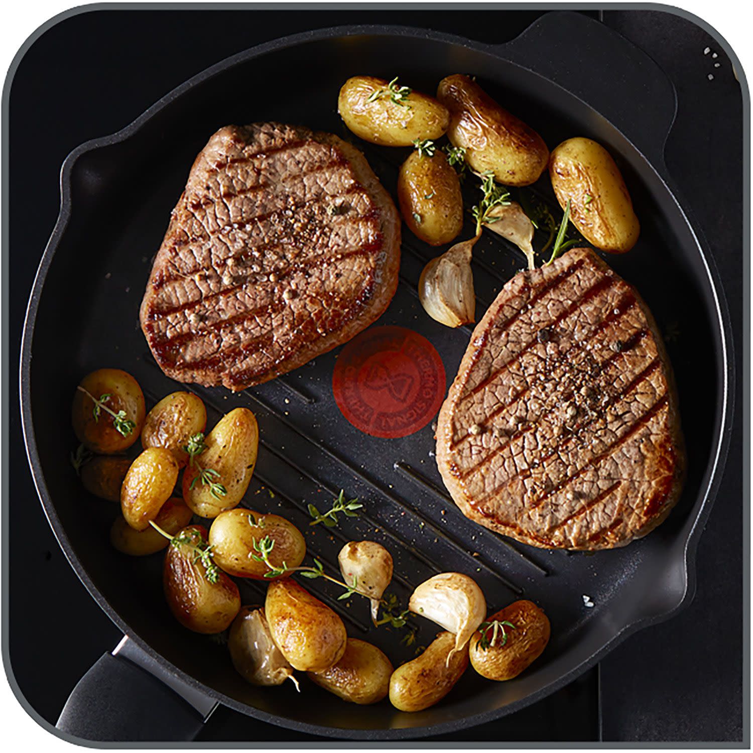 Έχεις αμφιβολίες για το αν τηγανίζεις σωστά το φιλέτο σου; Κανένα πρόβλημα! Μιας και το νέο σου τηγάνι είναι ο κατάλληλος σύμμαχός σου στην κουζίνα. Με το Thermo-signal™, το οποίο δείχνει την ιδανική θερμοκρασία σε κάθε τηγάνισμα, εξασφαλίζεις εξαιρετική υφή, τέλειο χρώμα και υπεροχή γεύση, σε κάθε γεύμα!