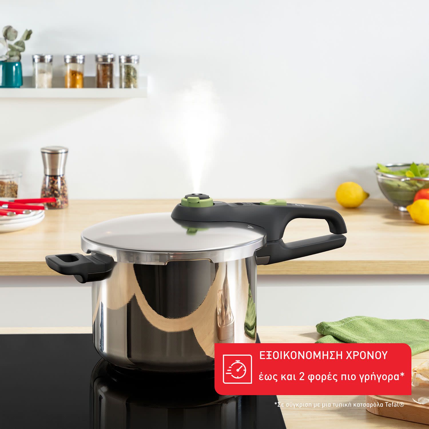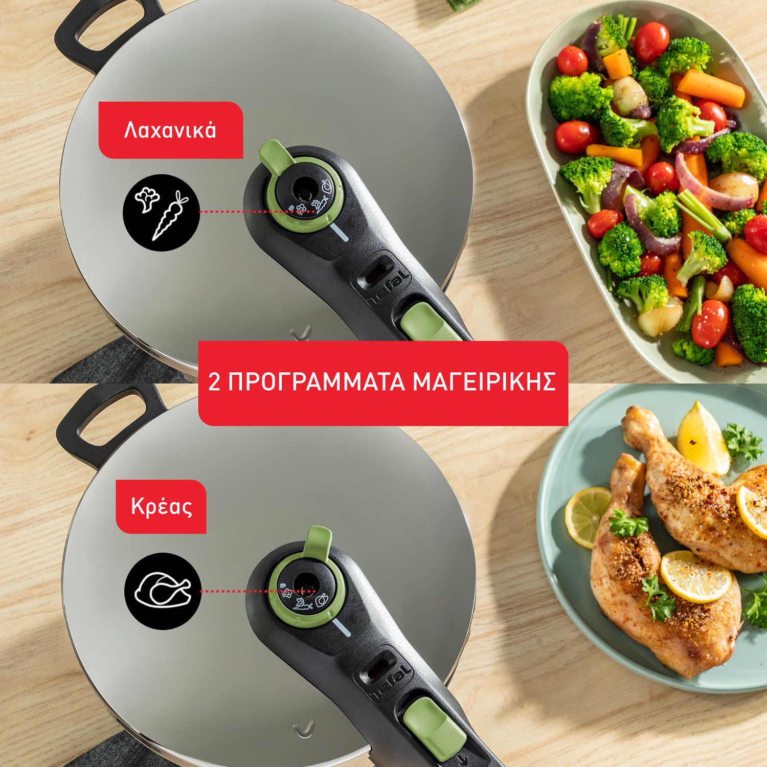 Η νέα σου χύτρα ταχύτητας έρχεται με δύο ειδικά προγράμματα, τα οποία βελτιστοποιούν τη θερμοκρασία μαγειρέματος και διατηρούν τα θρεπτικά συστατικά. Από τη μία, το πρόγραμμα των λαχανικών διατηρεί έως και το 80% της βιταμίνης C των λαχανικών σας, ενώ το πρόγραμμα για το κρέας μαγειρεύει το κρέας πιο γρήγορα (σε σύγκριση με μια τυπική κατσαρόλα Tefal).