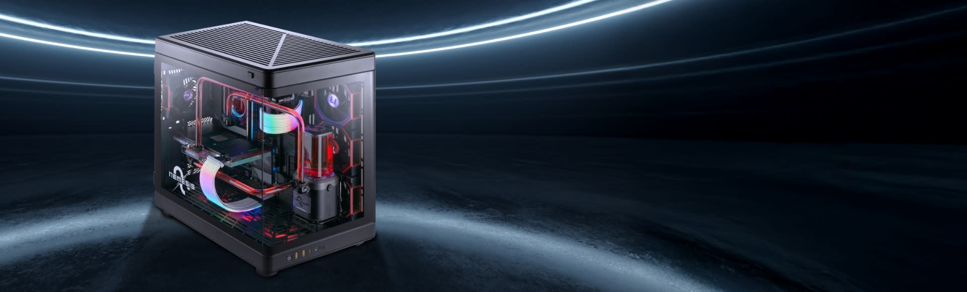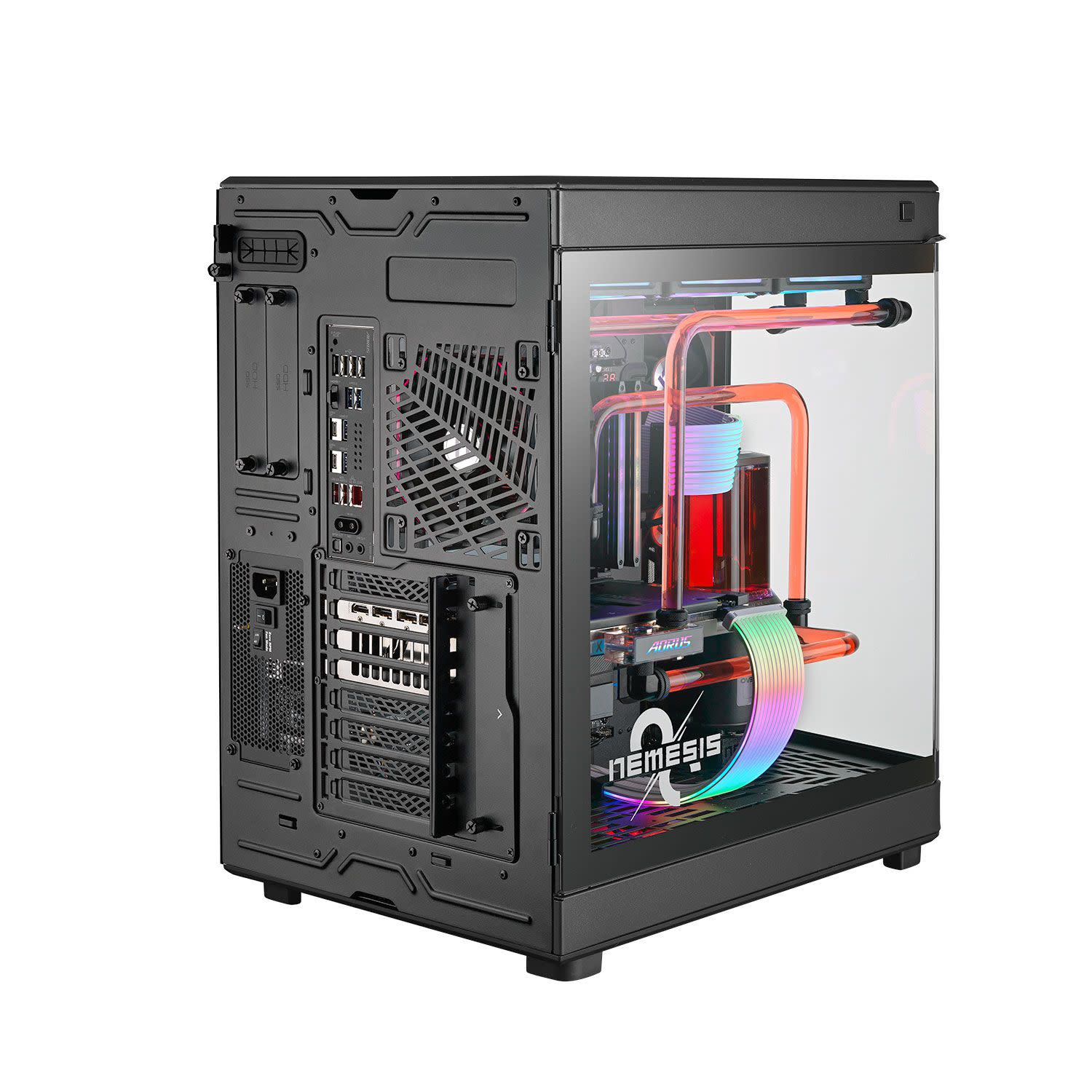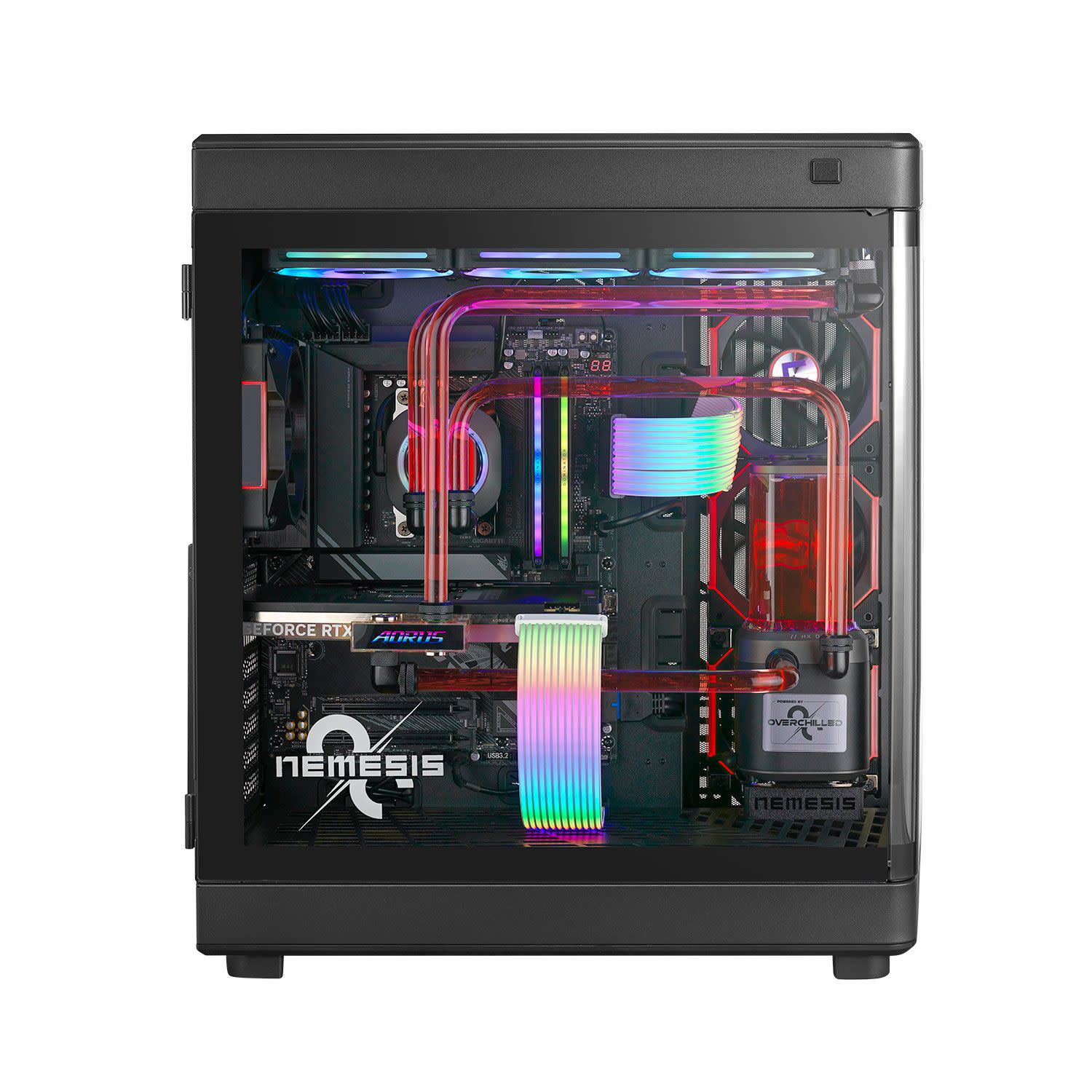 Την άψογη εικόνα του ξεχωριστού αυτού συστήματος συμπληρώνει το εντυπωσιακό Nemesis Full Tower Case II και το πανίσχυρο τροφοδοτικό — με πιστοποίηση Cybenetics Platinum — των 1200W.