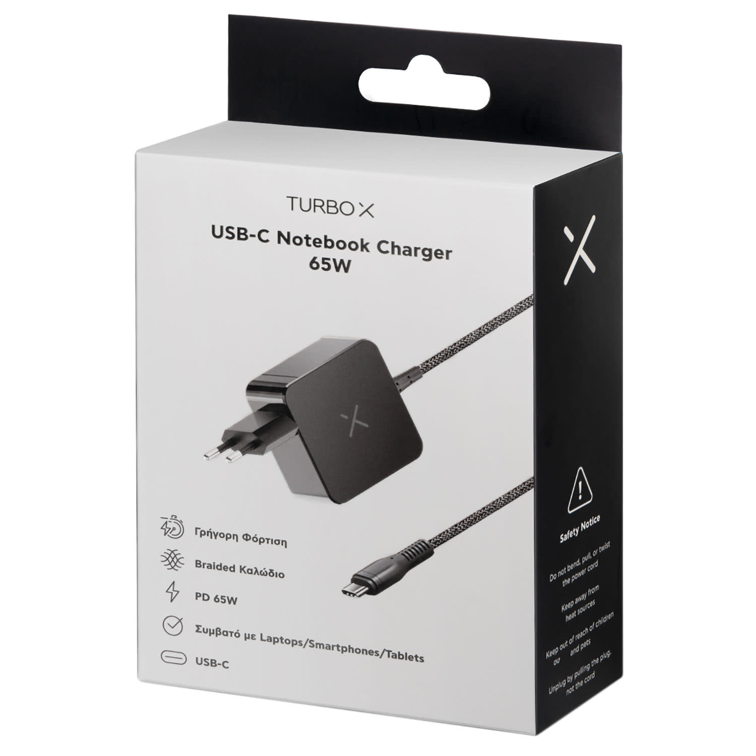 Αναπλήρωσε τη μπαταρία της συσκευής σου ενώ την χρησιμοποιείς, χωρίς διακοπές στην απόδοσή του: κομψός και ελαφρύς, και προσφέρει υψηλή απόδοση και φορητότητα, o Turbo-X USB-C Notebook Charger 65W παρέχει γρήγορη και αξιόπιστη φόρτιση (υποστηρίζει τεχνολογία φόρτισης Power Delivery).