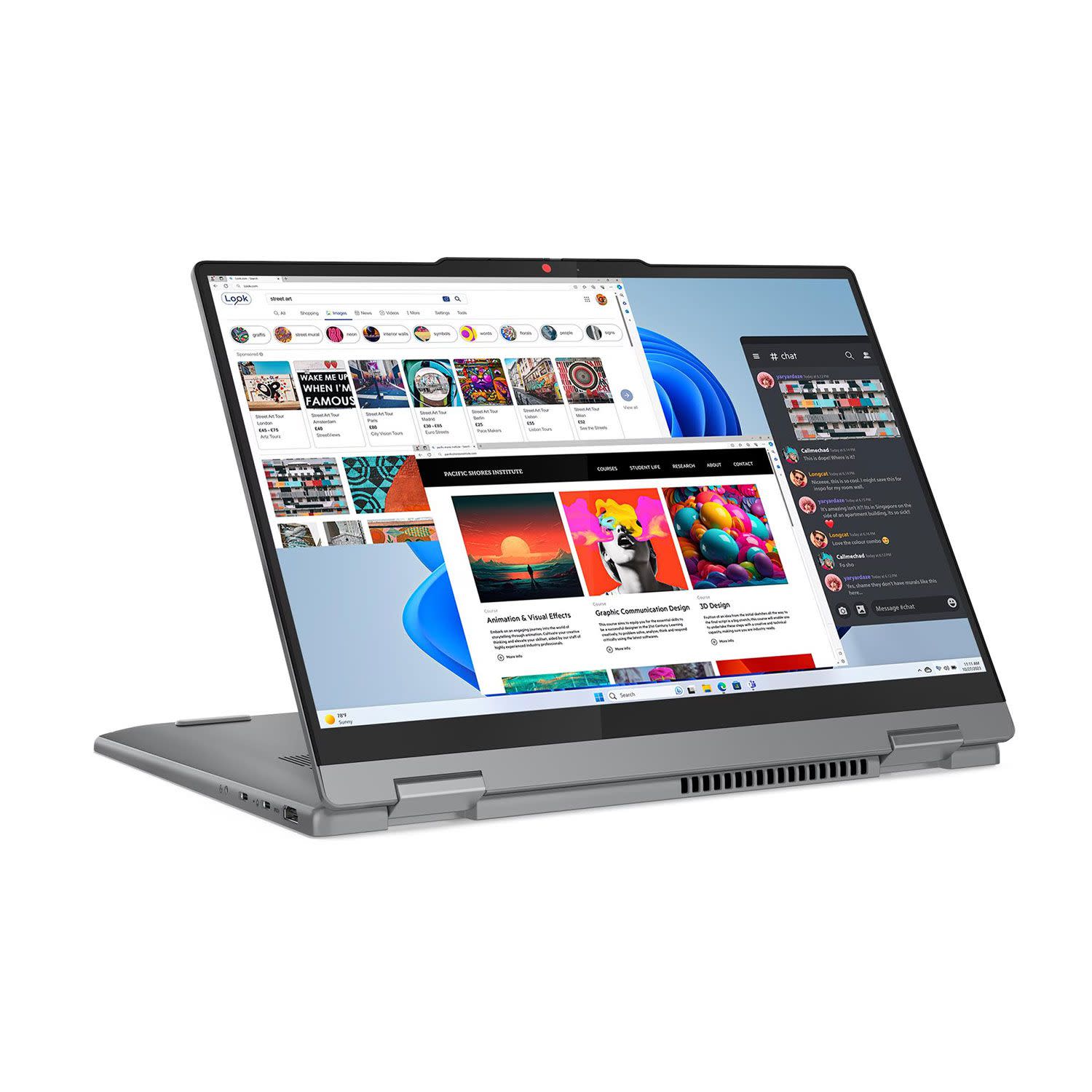 Το Copilot+ PC με την ονομασία IdeaPad 5 2-in-1 διαθέτει μία υπέροχη οθόνη αφής που χάρη σε ένα ειδικό, ευέλικτο μηχανισμό αναδίπλωσης μπορεί και «περιστρέφεται» κατά 360° ώστε από κανονικός φορητός υπολογιστής να μετατρέπεται σε tablet που σου επιτρέπει να σχεδιάζεις, να σκιτσάρεις ή να σημειώνεις στην οθόνη με ακρίβεια χρησιμοποιώντας το Lenovo® Digital Pen 2.