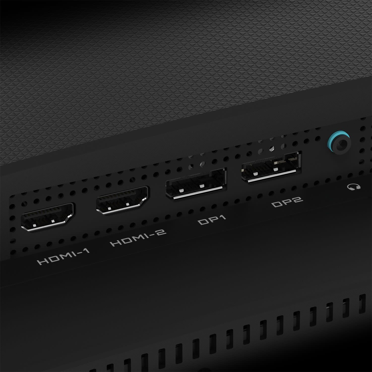 Η οθόνη ενσωματώνει δύο θύρες HDMI 2.0, μία θύρα DisplayPort 1.4, καθώς και μία υποδοχή ήχου (audio jack) 3,5mm για να συνδέσεις τα ακουστικά σου.