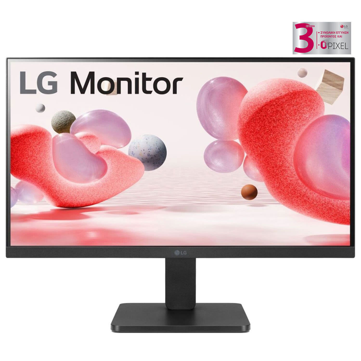 Οθόνη με πάνελ Full HD IPS 23,8” για ρεαλιστικά χρώματα, ρυθμό ανανέωσης 100Hz, βελτιωμένη προστασία ματιών, σχεδίαση πρακτικά χωρίς περιθώρια, τεχνολογία AMD FreeSync™ και 3 έτη εγγύηση LG.