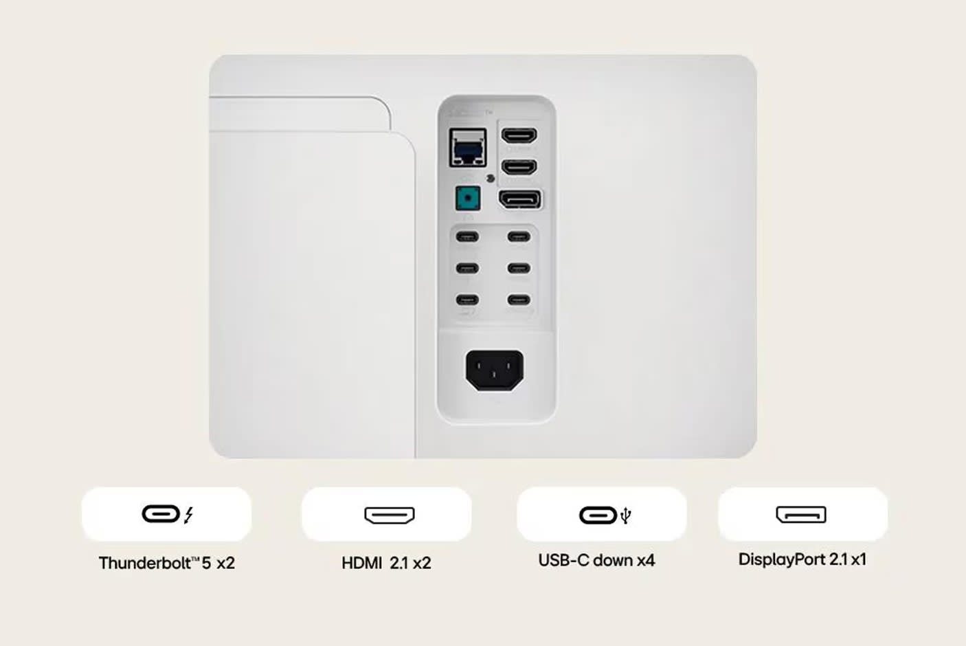 Με Thunderbolt™ 5, HDMI 2.1 (x2), Display Port 2.1 (x1) και USB-C (x4) downsteream, μπορείς να συνδέσεις κάμερες, laptops και δίσκους, χωρίς ούτε έναν αντάπτορα ή hub.
