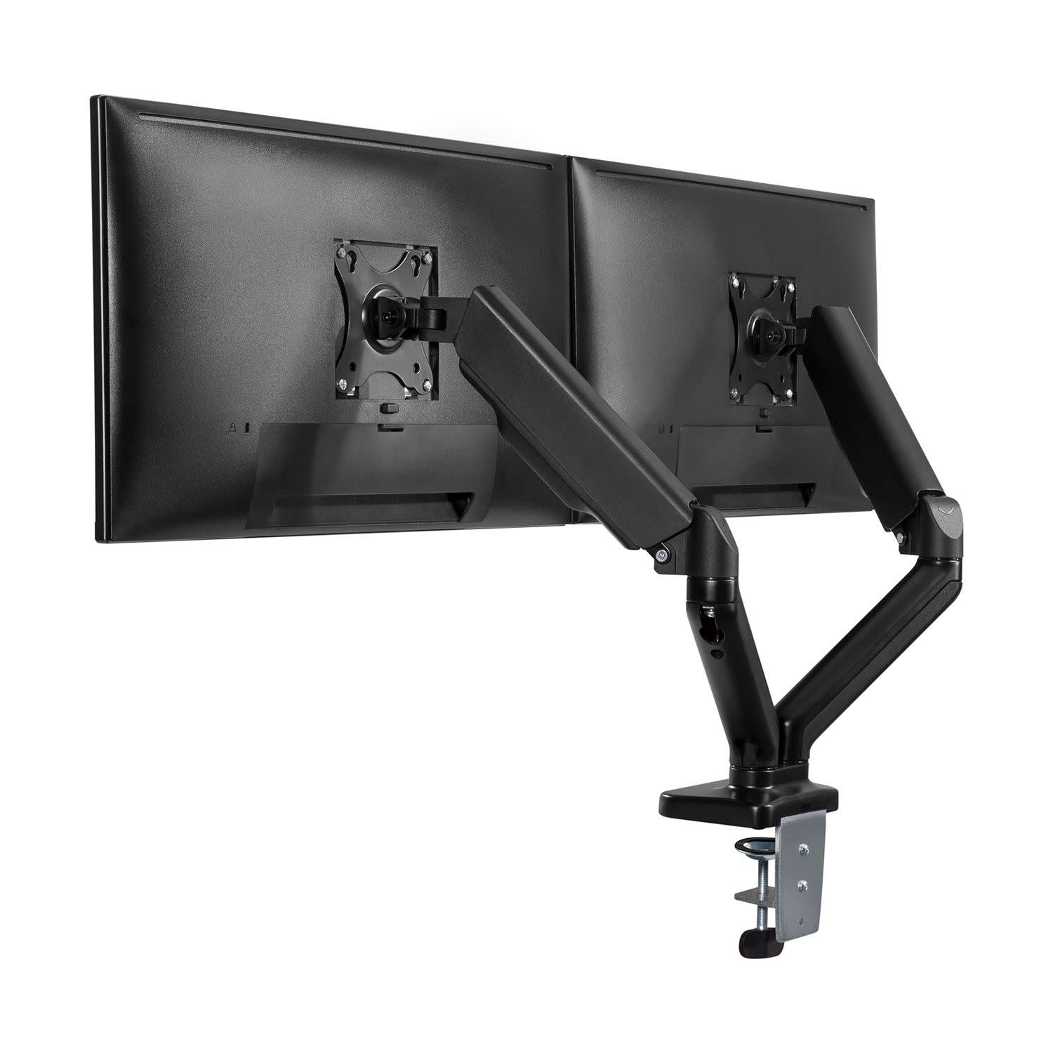 Βάση οθόνης από την Turbo-X με διπλό βραχίονα και ελατήριο αερίου για εύκολες κινήσεις των οθονών. Υποστηρίζει Vesa 75x75 και 100x100 για οθόνες 17 έως 32 ίντσες, βάρους 9kg ανά οθόνη.