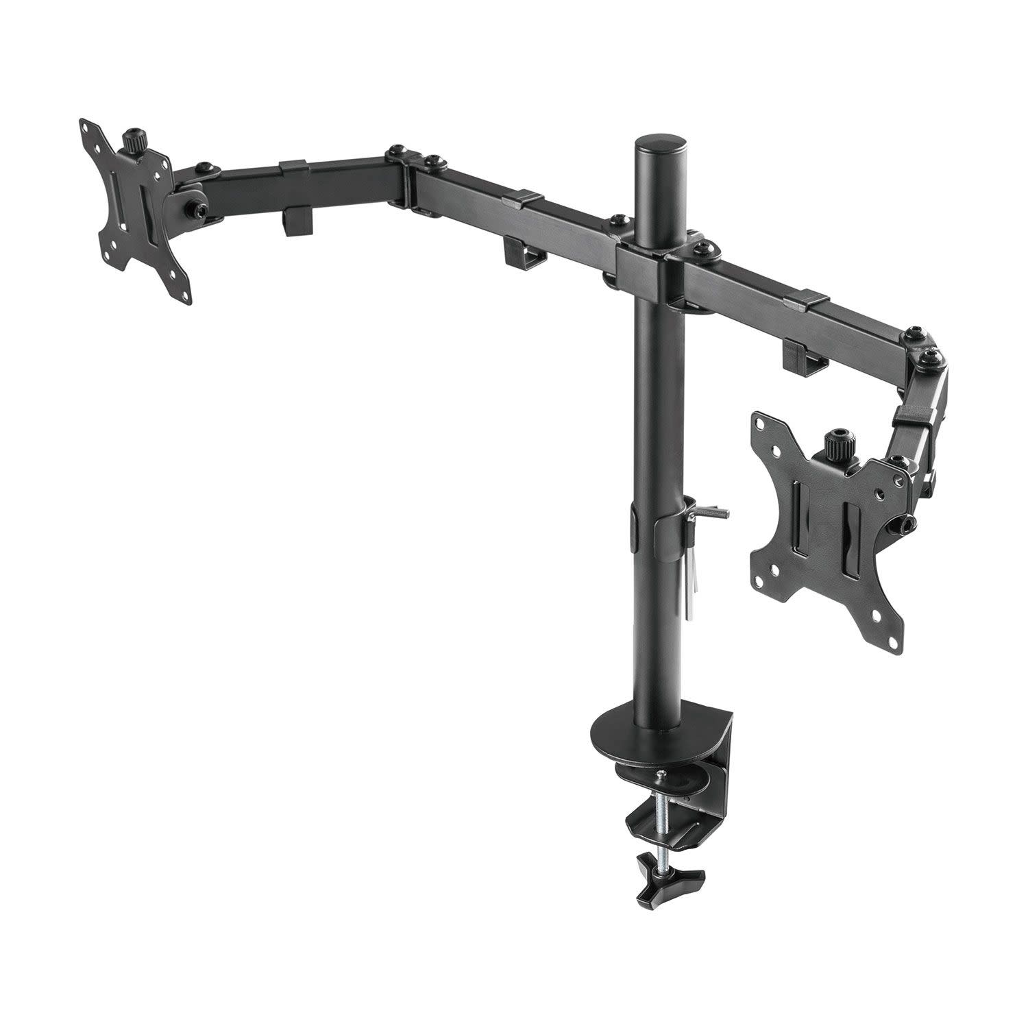 Η κατασκευή της με διπλό μεταλλικό βραχίονα είναι ιδανική για monitor με βάρος έως 8 κιλά (Το καθένα) και 13 έως και 32 ίντσες. Διαθέτει μηχανισμό για την καλύτερη οργάνωση των καλωδίων, ενώ παράλληλα, ο σχεδιασμός της με περιστροφή στον οριζόντιο άξονα έως +/-180 μοίρες σου επιτρέπει την εύκολη προσαρμογή για όλες τις εργασίες σου.