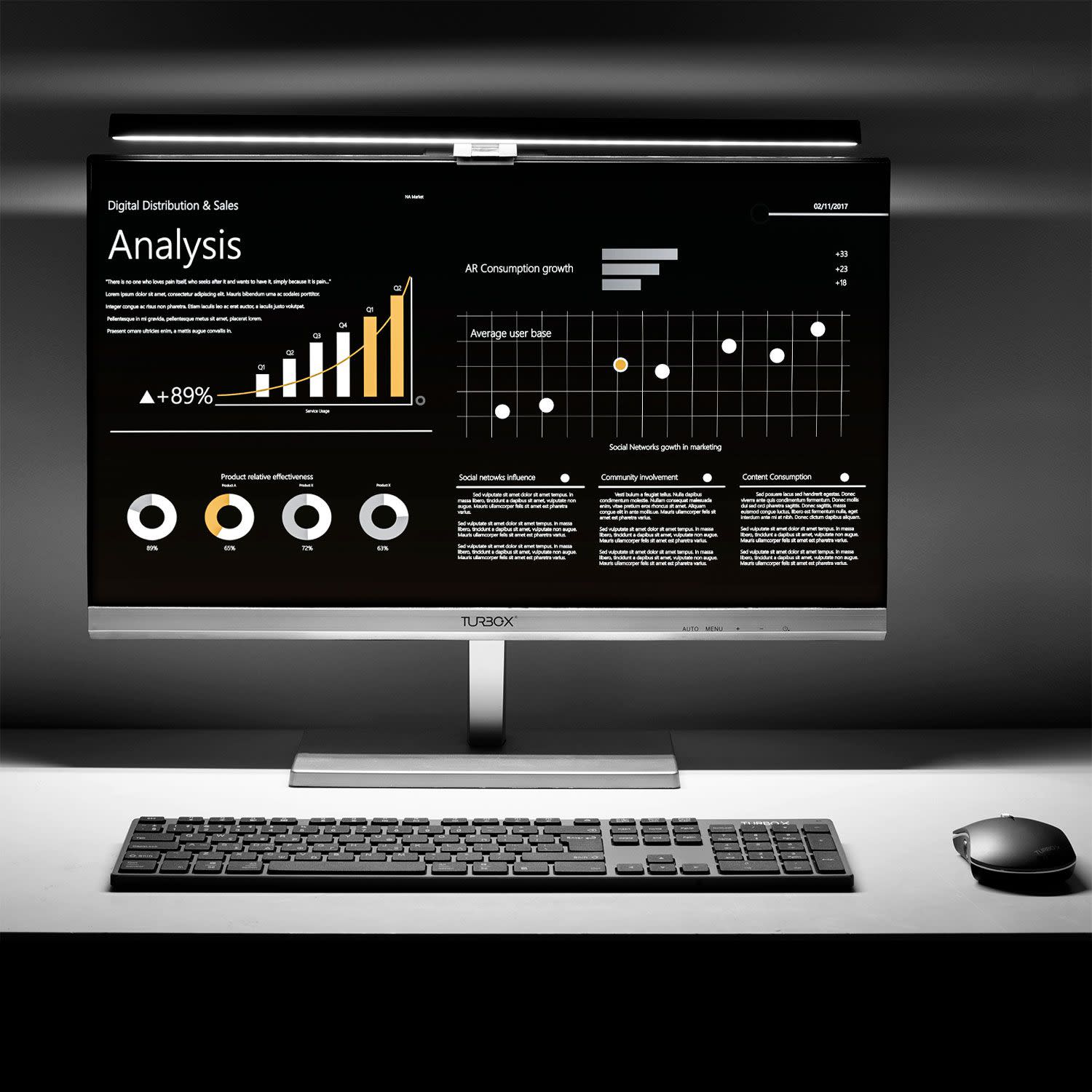 Σχεδιασμένο για όσους περνούν πολλές ώρες μπροστά σε μια οθόνη υπολογιστή, το εργονομικό Turbo-X Φωτιστικό Οθόνης LED προσφέρει σωστό φωτισμό για μειωμένη καταπόνηση των ματιών!