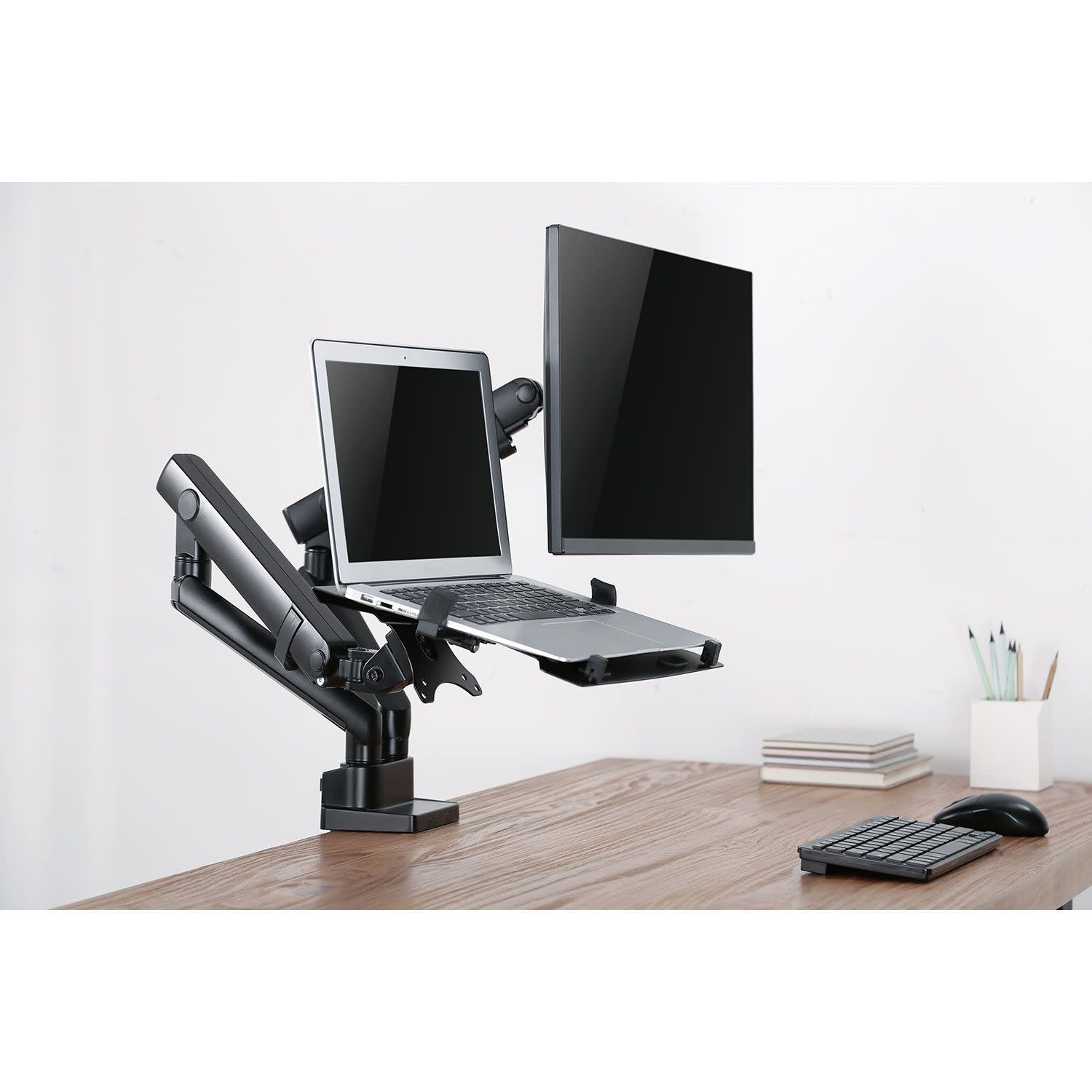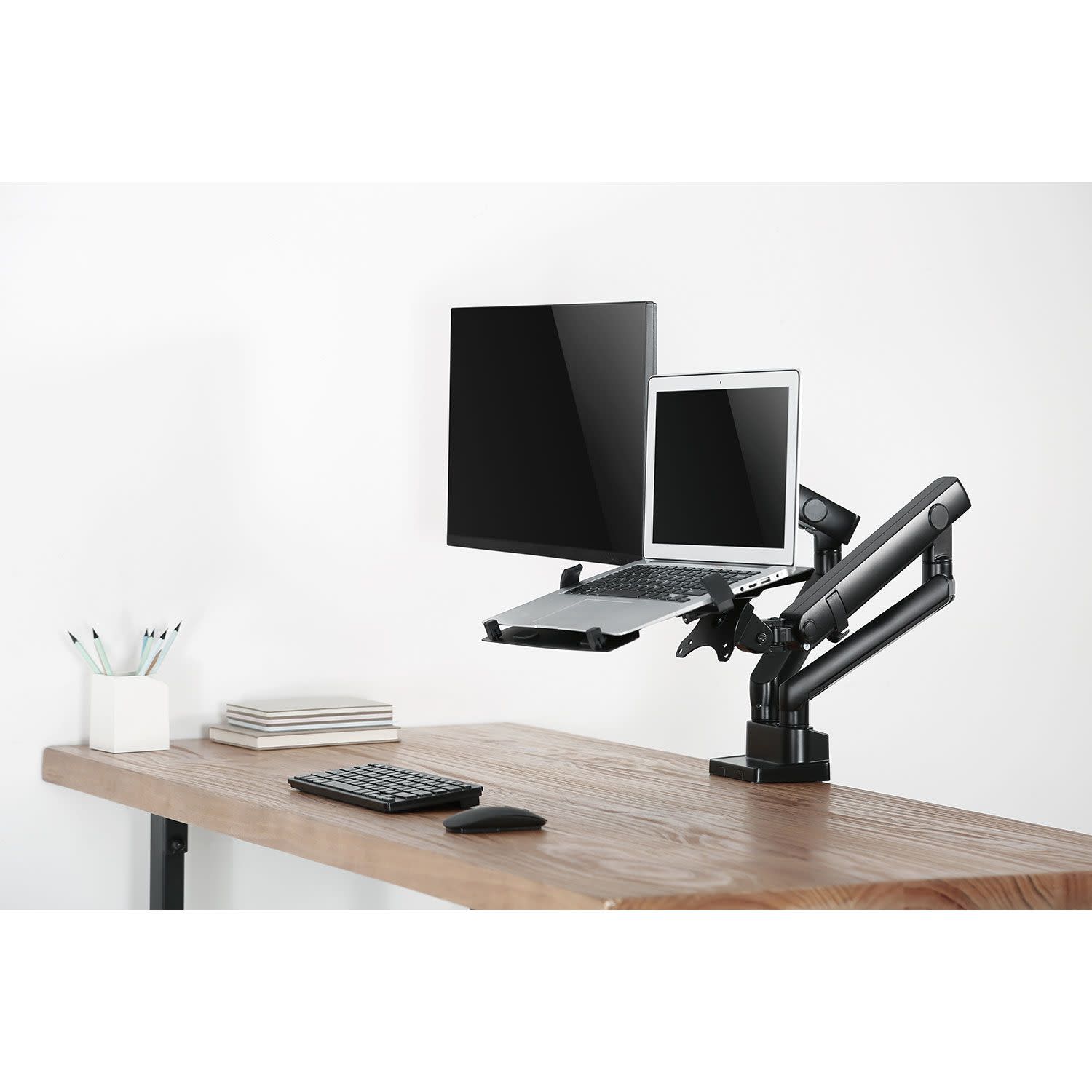 Περιστρεφόμενη βάση οθονών με βραχίονες αλουμινίου για να τοποθετήσεις σωστά το laptop και το monitor σου. Είναι γερής κατασκευής, ώστε να υποστηρίζει και τον πλέον αναβαθμισμένο εξοπλισμό.