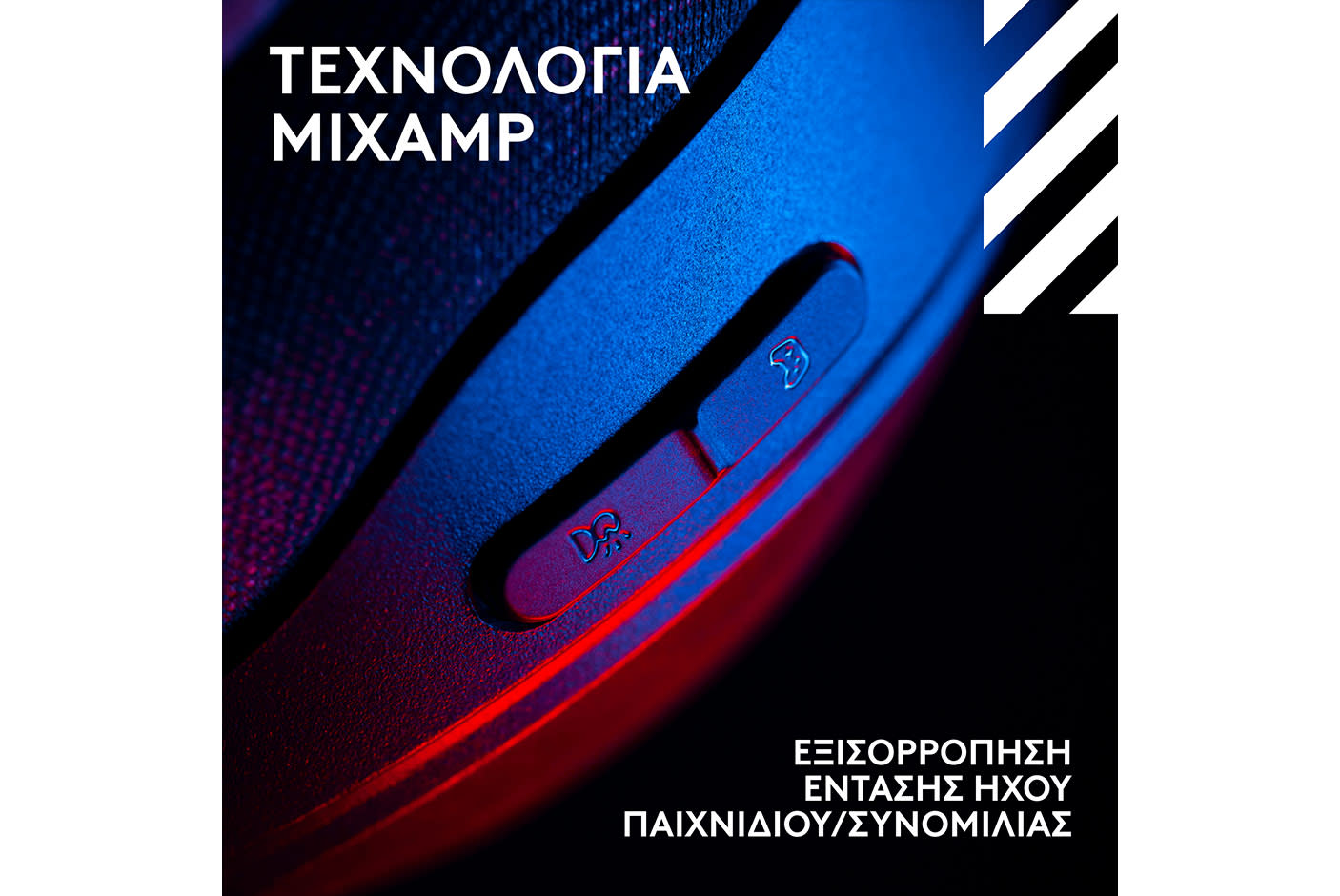 Ακούστε τους συμπαίκτες σας καθαρά και εξισορροπήστε την ένταση του ήχου μεταξύ του παιχνιδιού και των καναλιών φωνητικής συνομιλίας με τα στοιχεία ελέγχου στο ακουστικό*.