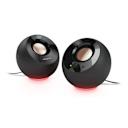 Αυτό το σύστημα ηχείων USB 2.0 έχει δεχτεί διάφορες βελτιώσεις σε όλα τα χαρακτηριστικά του, από τον τίτλο έως και την απόδοση ήχου. Με ανυψωμένους κατά 45° οδηγούς πλήρους εμβέλειας (2x 2” Full-range, 80–20,000 Hz, 85dB) και Passive Radiators για απόδοση έως και 4,4W RMS, εντυπωσιάζει παρά το μικρό του μέγεθος (116 mm), προσφέροντας δυνατό και καθαρό ήχο.