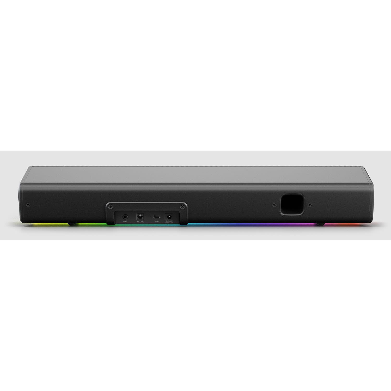 Sound Blaster GS5 RGB Gaming Soundbar με τεχνολογία SuperWide™, Bluetooth® 5.3, USB Audio (μέσω USB-C), 3,5mm AUX-in, οπτική (TOSLINK) και υποδοχή ακουστικών για καθηλωτική εμπειρία ήχου.