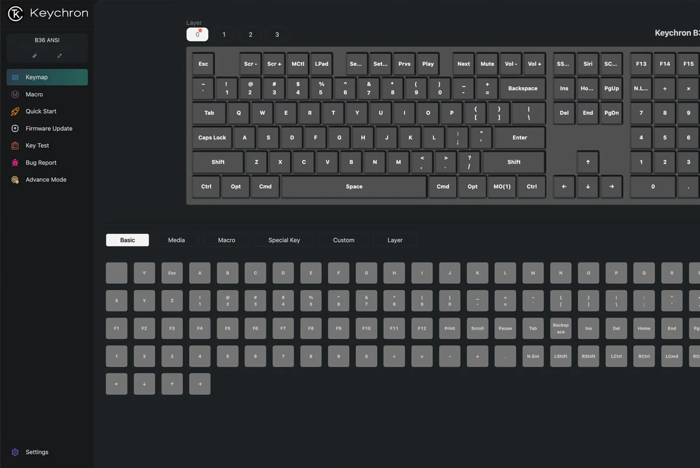 Απόλαυσε απεριόριστες δυνατότητες προσαρμογής με την εφαρμογή web Keychron Launcher, η οποία επιτρέπει την εύκολη αναδιάταξη πλήκτρων, μακροεντολές, συντομεύσεις και πολλά άλλα.