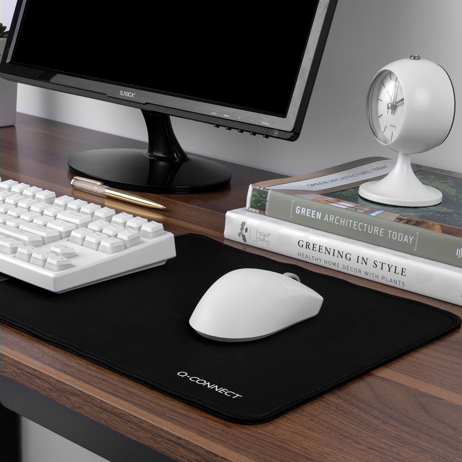 Mousepad της Q-Connect σε χρώμα μαύρο και με διαστάσεις 32x27cm, ιδανικό για κάθε τύπο ποντικιού. Χάρη στην ύφανσή του, προσφέρει ακρίβεια και γρήγορη ανταπόκριση στις κινήσεις σου.
