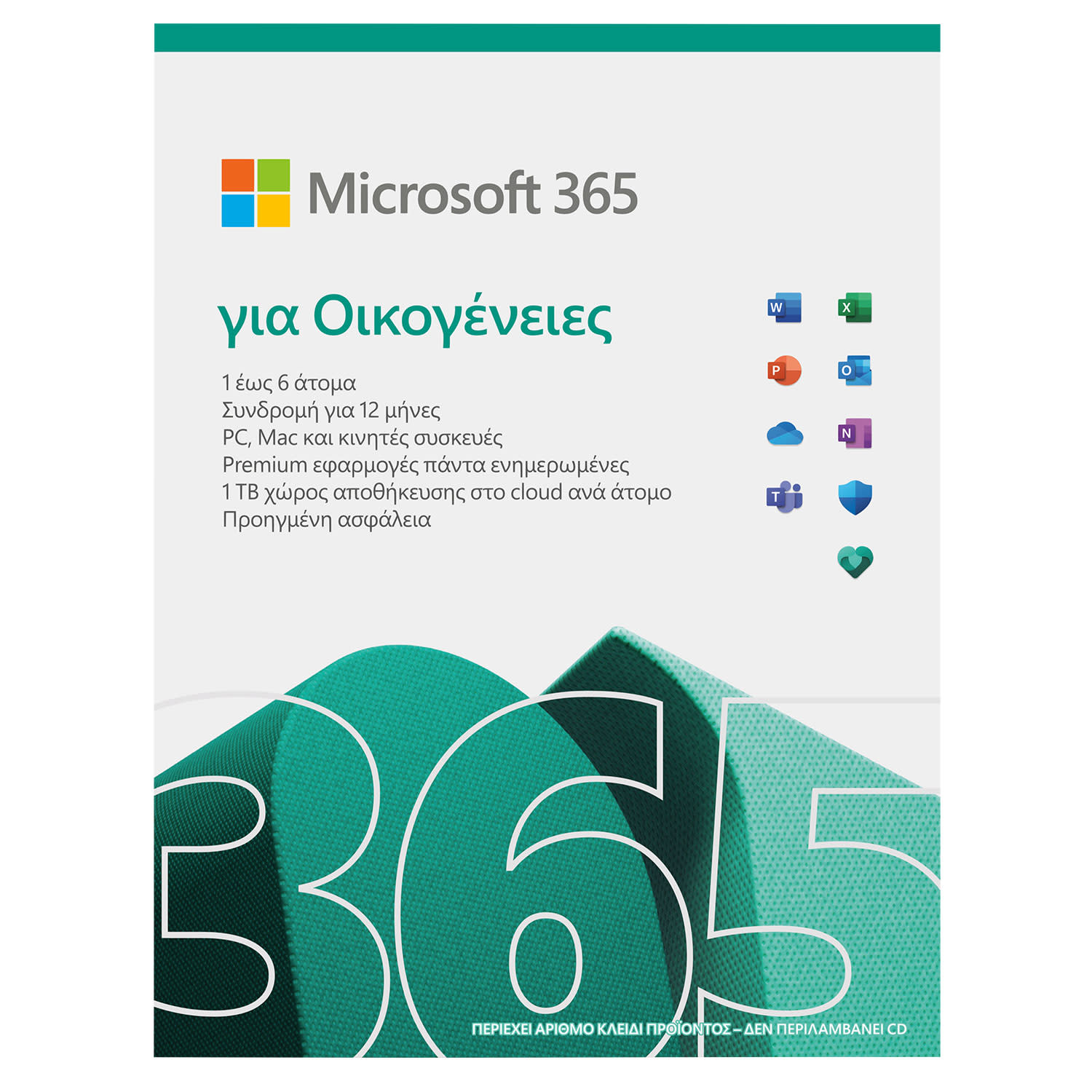 Mε το Microsoft Office 365 Family, εσύ και η οικογένειά σου επιτυγχάνετε τα καλύτερα δυνατά αποτελέσματα. Περιλαμβάνει τις δημοφιλέστερες εφαρμογές γραφείου για έως και 6 χρήστες, αλλά και υπηρεσίες που θα διευκολύνουν την καθημερινότητά σας.
