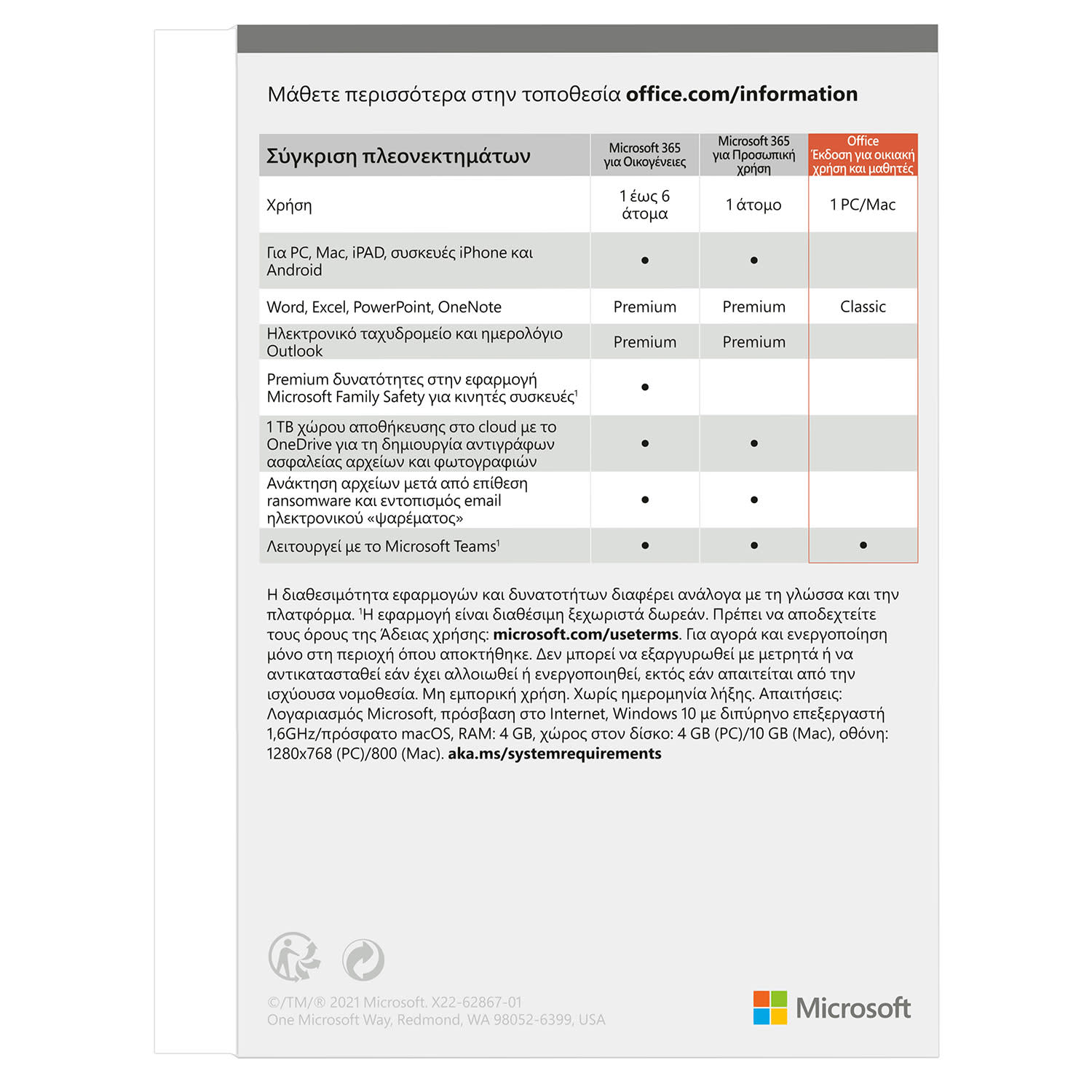 Microsoft Office Home & Student 2021 GR 1 άδεια,