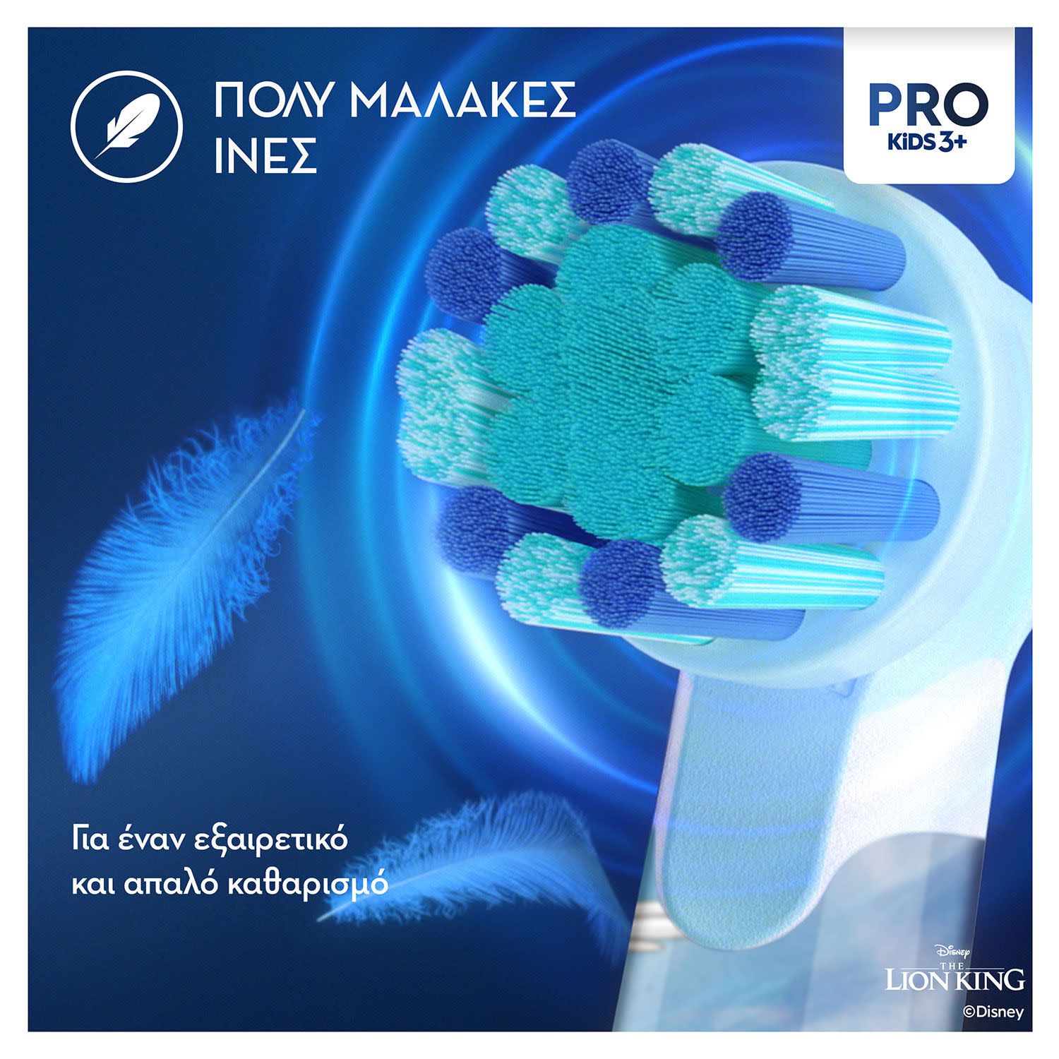 Παιδικές κεφαλές οδοντόβουρτσας από την Oral – B με αγαπημένη φιγούρα από το Lion King, γιατί βούρτσισμα και παιχνίδι πάνε… παρέα! Οι περιστρεφόμενες κεφαλές διαθέτουν εξαιρετικά μαλακές ίνες, που είναι ήπιες με τα ούλα των παιδιών, ενώ έχουν μεγαλύτερες ίνες στο κέντρο, ώστε να εστιάζουν στις μασητικές επιφάνειες, όπου συνήθως εμφανίζεται η τερηδόνα. Στο σετ περιλαμβάνονται 4 τεμάχια.