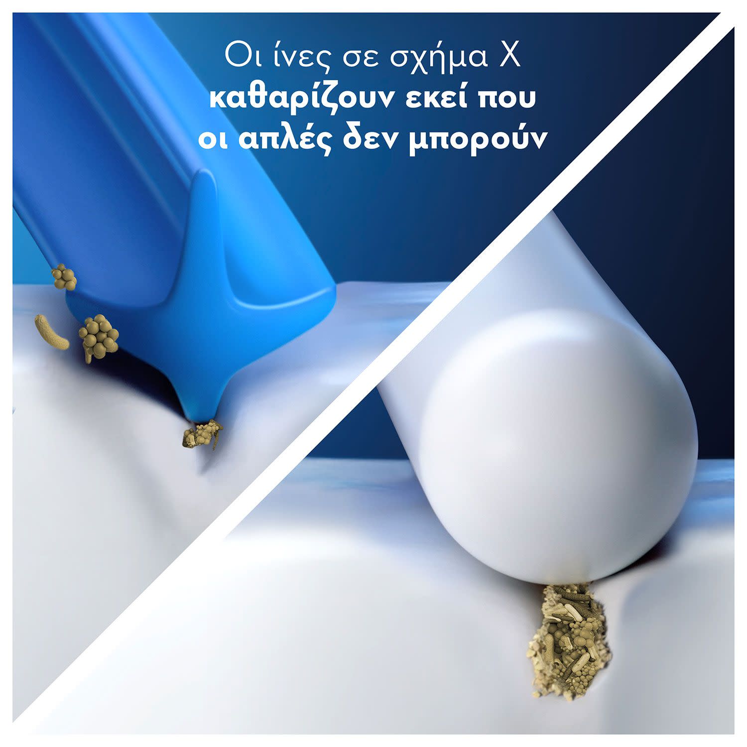 Οι ίνες Oral-B Pro Precision Clean απομακρύνουν αισθητά περισσότερη πλάκα συγκριτικά με μια απλή χειροκίνητη οδοντόβουρτσα, προσφέροντας ανώτερο καθαρισμό ανά δόντι. Σχεδιασμένες με νέες ίνες σχήματος «Χ», φτάνουν και καθαρίζουν περιοχές της στοματικής κοιλότητας που οι στρογγυλές ίνες δυσκολεύονται να φτάσουν.