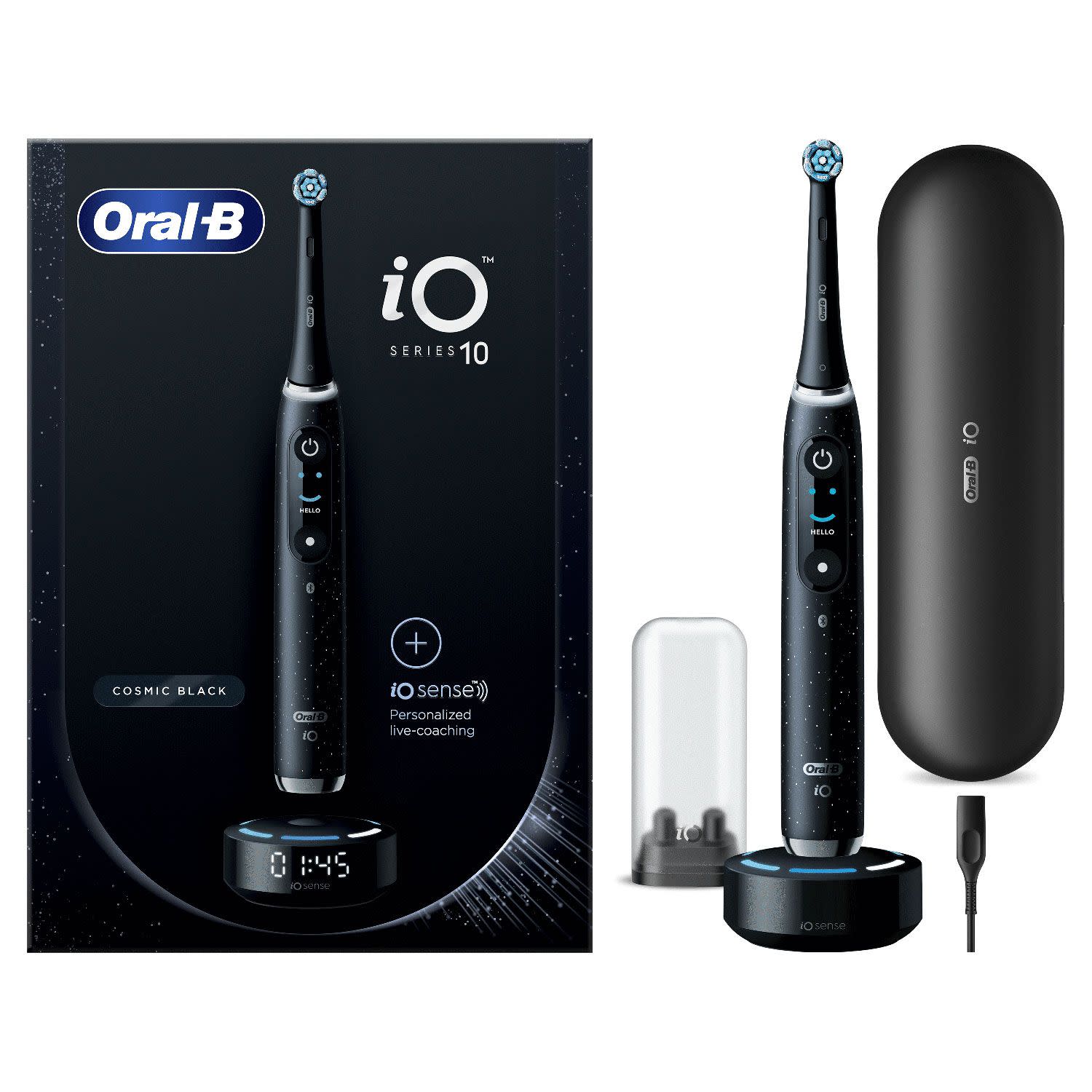 Η συσκευασία περιλαμβάνει 1 μαύρη iO10 λαβή, κεφαλή βουρτσίσματος Ultimate Clean, iOSense έξυπνο μαγνητικό φορτιστή, Powe2Go θήκη ταξιδίου με USB και βάση αποθήκευσης κεφαλής βουρτσίσματος με καπάκι.