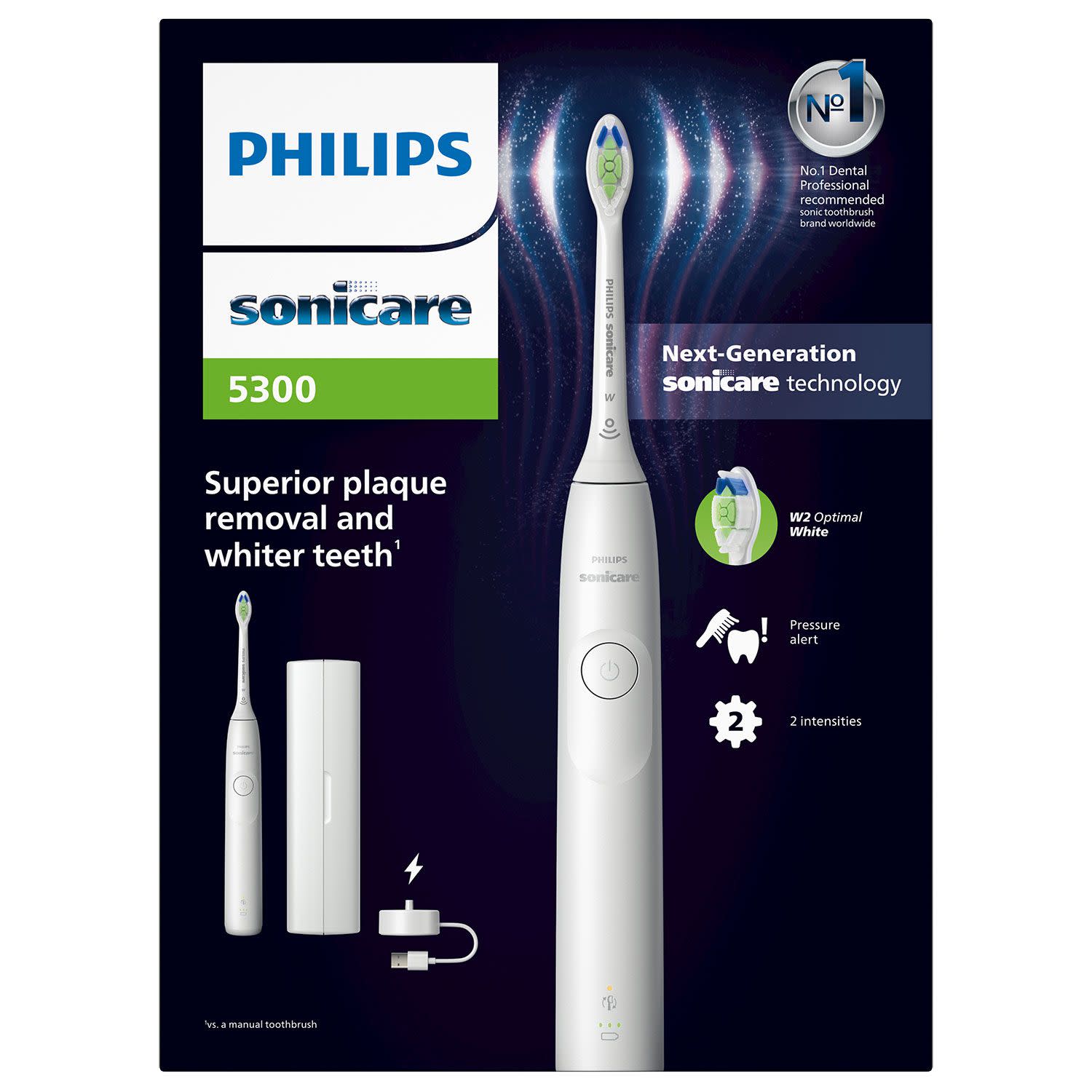 Η Philips Sonicare 5300 προσφέρει ακόμα πιο βαθύ καθαρισμό, αφαιρώντας χωρίς κόπο τις κηλίδες από την επιφάνεια των δοντιών για αστραφτερό, κατάλευκο χαμόγελο. Με την κεφαλή βουρτσίσματος Optimal White W2, μπορείς να διατηρείς εύκολα τα δόντια σου λαμπερά, ανάμεσα στα ραντεβού επαγγελματικής λεύκανσης, ενώ αφαιρεί έως και 7 φορές περισσότερη οδοντική πλάκα σε σχέση με τις συμβατικές οδοντόβουρτσες.