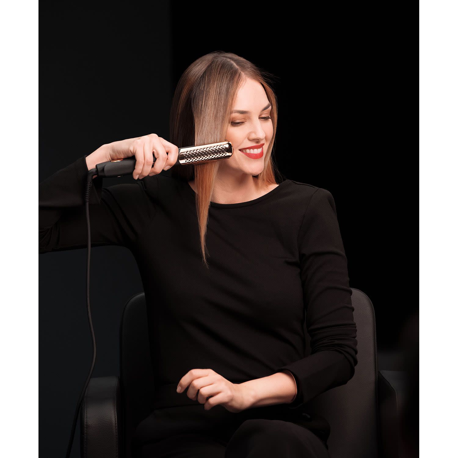 Επιπλέον, το ενσωματωμένο χτενάκι οδηγεί κάθε τούφα μαλλιών μέσα στις 3D πλάκες της, ενώ η θερμοκρασία κατανέμεται ομοιόμορφα σε όλο το μήκος της πλάκας για τέλειο αποτέλεσμα κάθε, μα κάθε, φορά!