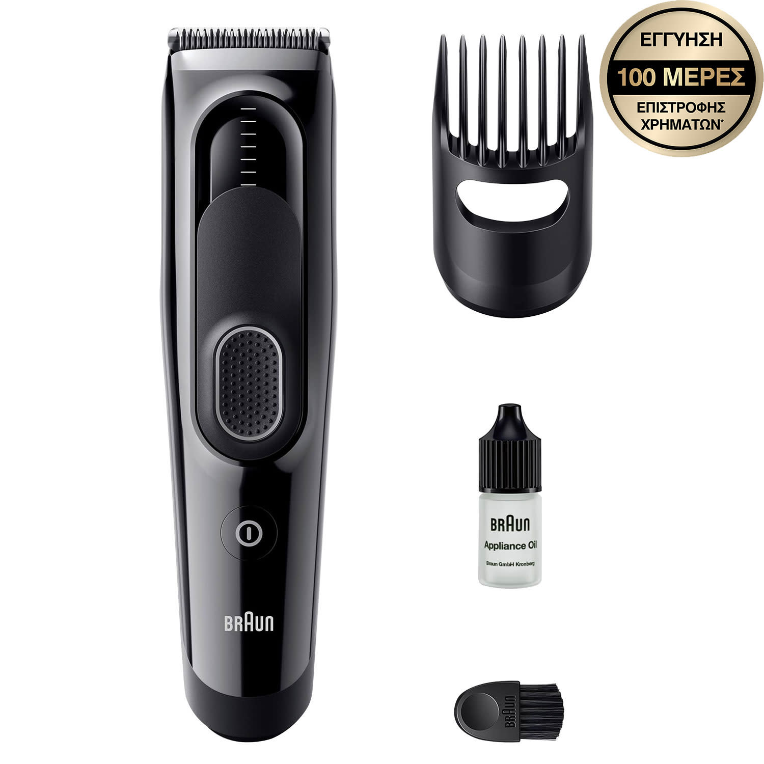 Κάνε τα κουρέματα που πάντα ήθελες με την κουρευτική μηχανή HC5310 της Braun. Είναι επαναφορτιζόμενη για να μην μπλέκεις με καλώδια κατά τη διάρκεια της χρήσης. Ταυτόχρονα μπορείς να τη χρησιμοποιήσεις και με καλώδιο στην πρίζα για να μην «ξεμείνεις» ποτέ! Έρχεται με αυτονομία 50min, αρκετή για να φέρει εις πέρας κάθε αποστολή. Με 9 θέσεις κοπής και δύο χτένες για λεπτομερές κούρεμα, θα καλύψει όλες τις ανάγκες σου.