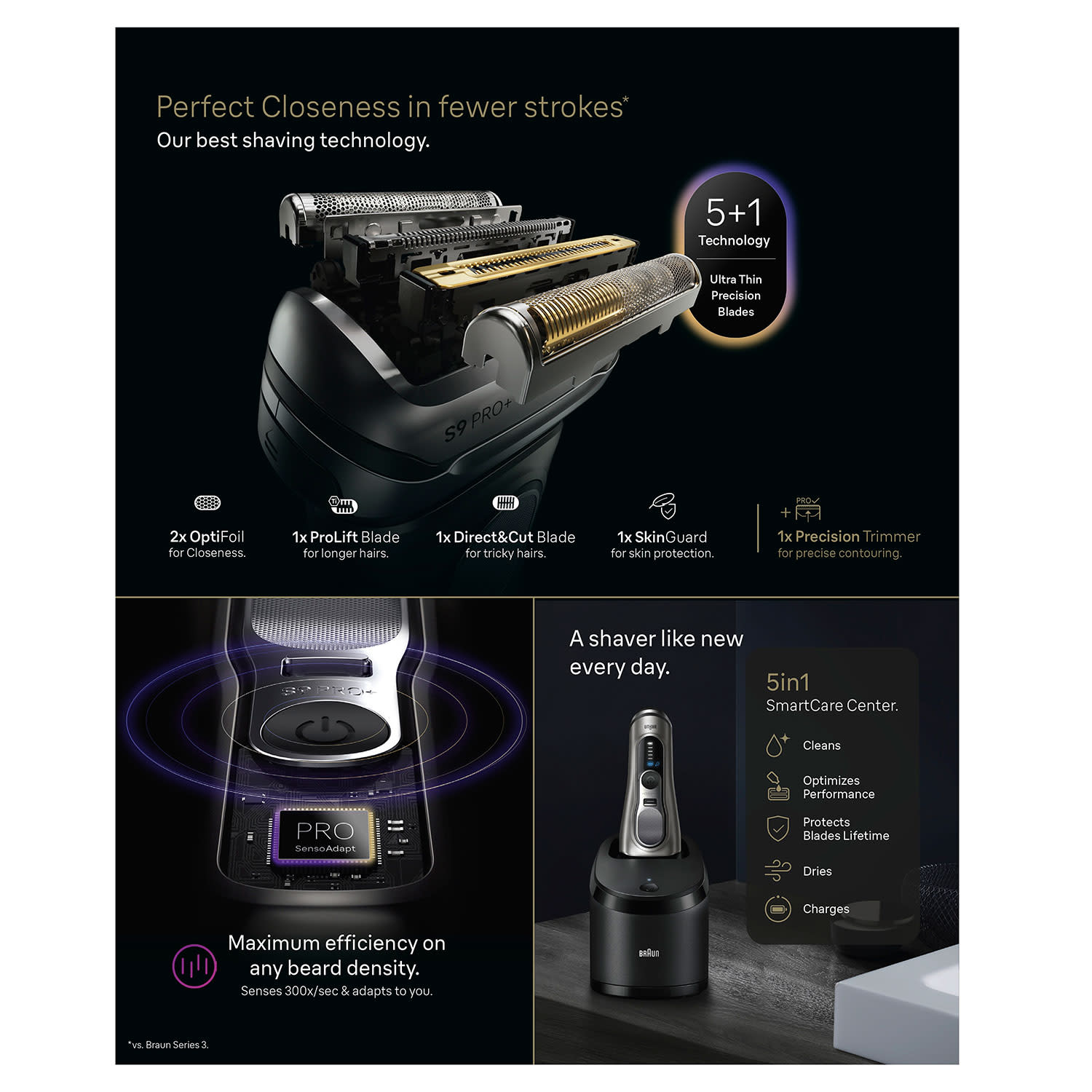 Πέντε συγχρονισμένα εξαρτήματα ξυρίσματος ενώνουν τις δυνάμεις τους για άψογο αποτέλεσμα. Το OptiFoil προσφέρει βαθύ ξύρισμα στα 0.05mm, με εξαιρετικά λεπτό σχεδιασμό λεπίδας, ενώ το SkinGuard αποτρέπει τους ερεθισμούς της επιδερμίδας χάρη στην προστατευτική μεταλλική μπάρα. Όσον αφορά τις λεπίδες, η Direct & Cut ξυρίζει τις δύσκολες τρίχες που μεγαλώνουν προς όλες τις κατευθύνσεις, ενώ η ProLift ξυρίζει ακόμα και τις πιο μακριές τρίχες.