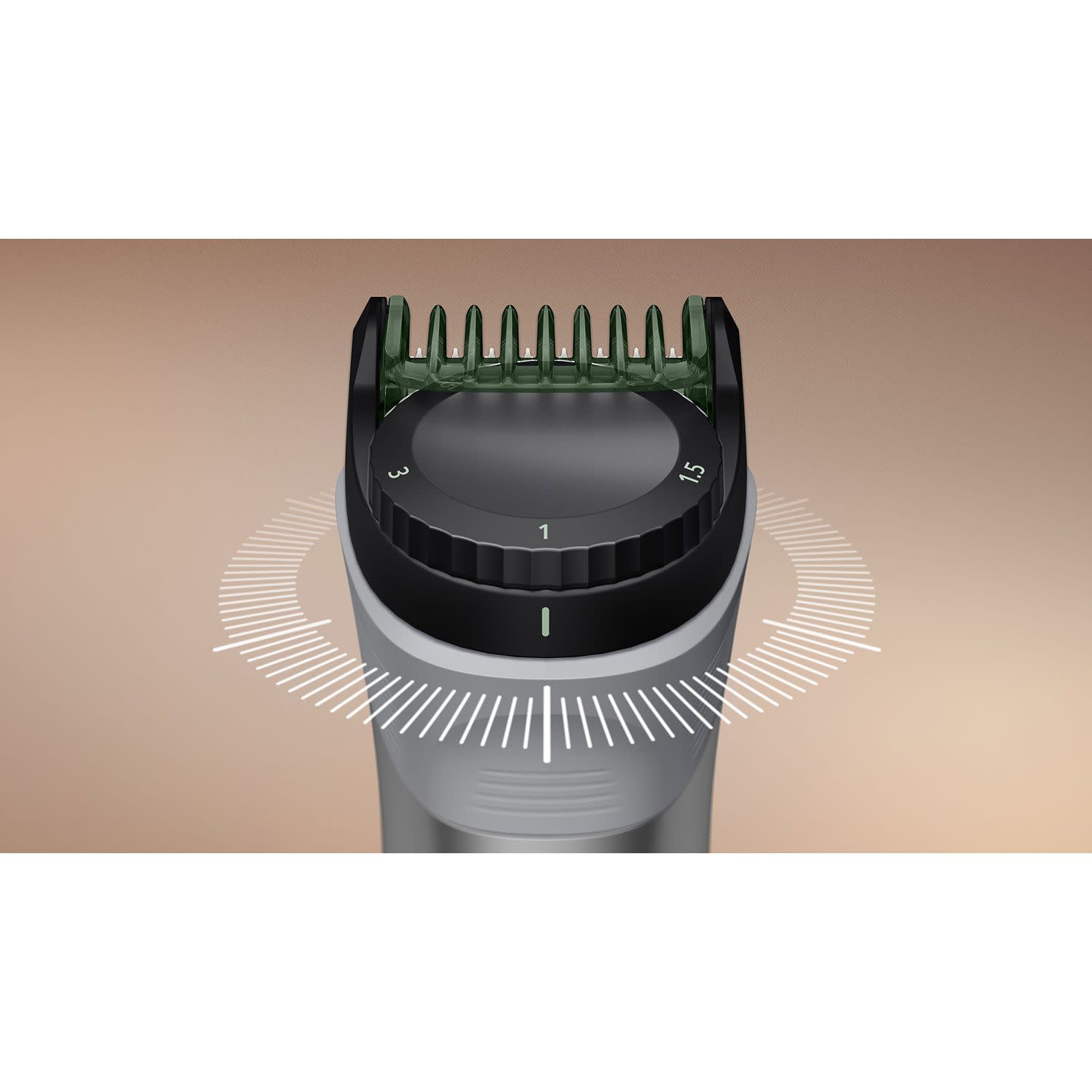 Χάρη στις πολλαπλές χτένες που διαθέτει το νέο σου σετ, σου προσφέρει 13 διαφορετικές ρυθμίσεις μήκους από 0,5 έως 16mm., σε βήματα ακριβείας για ομοιόμορφο τριμάρισμα, τόσο στα πιο κοντά όσο και στα πιο μακριά γένια. Επιπλέον, η στενή σχεδίαση του εξαρτήματος τριμαρίσματος ακριβείας, σου επιτρέπει να περιποιείσαι τις μικρές λεπτομέρειες γύρω από το στόμα.