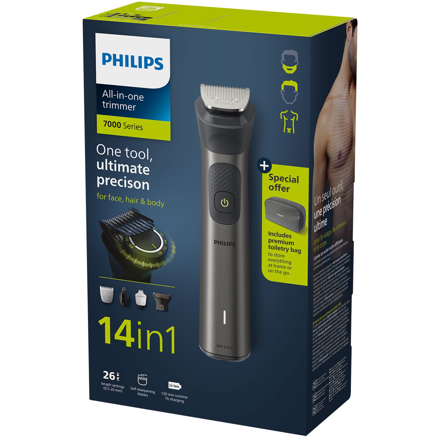 Με αυτονομία έως και 120 λεπτά (Trimmer) ασχολείσαι σχολαστικά με την περιποίησή σου, είτε σε στεγνή είτε σε υγρή επιφάνεια. Έτοιμος; Έφυγες!