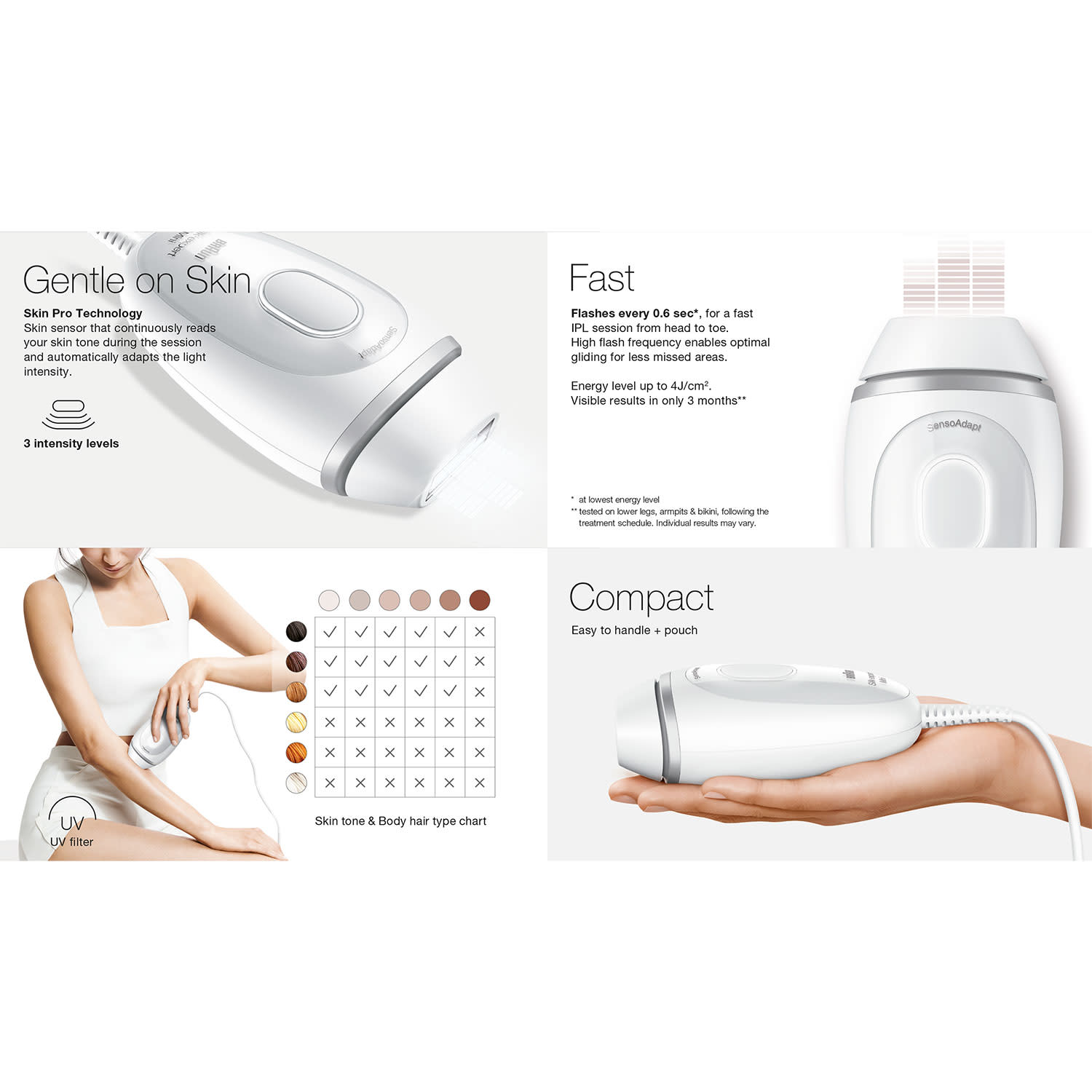 Καθώς ο τόνος της επιδερμίδας διαφέρει ανάλογα με το εκάστοτε σημείο του σώματος, η μηχανή διαθέτει τον ειδικό αισθητήρα SensoAdapt (με προστασία από την υπεριώδη ακτινοβολία), που ανιχνεύει συνεχώς τον τόνο και προσαρμόζει τις λάμψεις, προσφέροντας ασφαλή και αποτελεσματική αφαίρεση των ορατών τριχών.